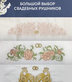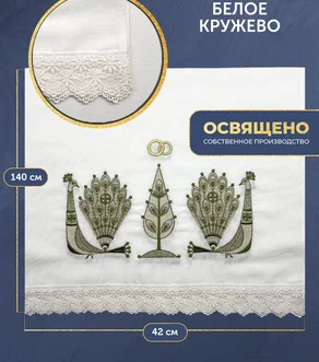 Рушник венчальный с зелеными павлинами 42,5х140 см