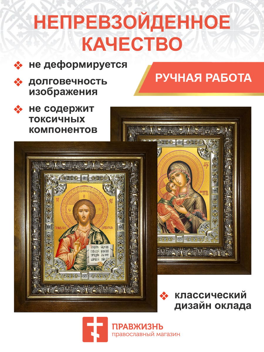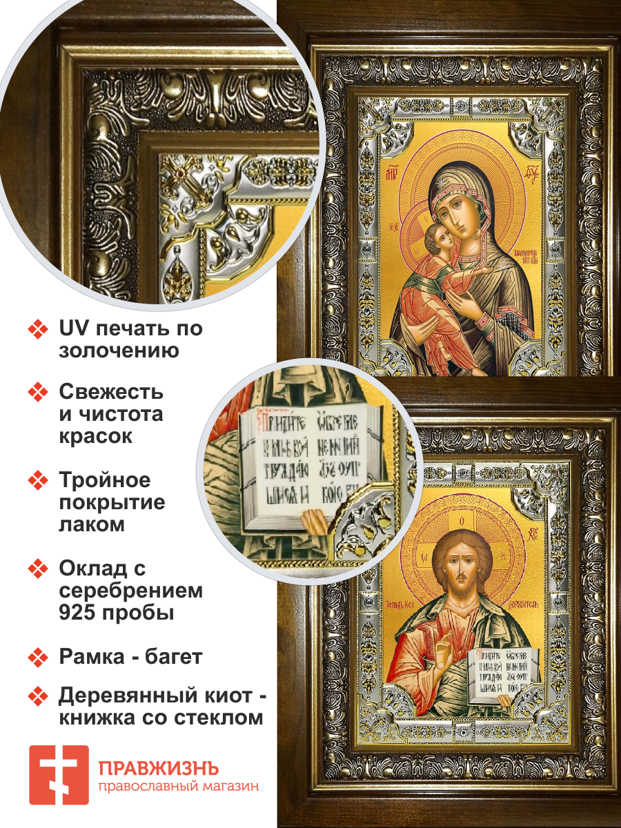Икона венчальная пара Богородица Владимирская и Спаситель в киоте 24х30 см - 2 шт.