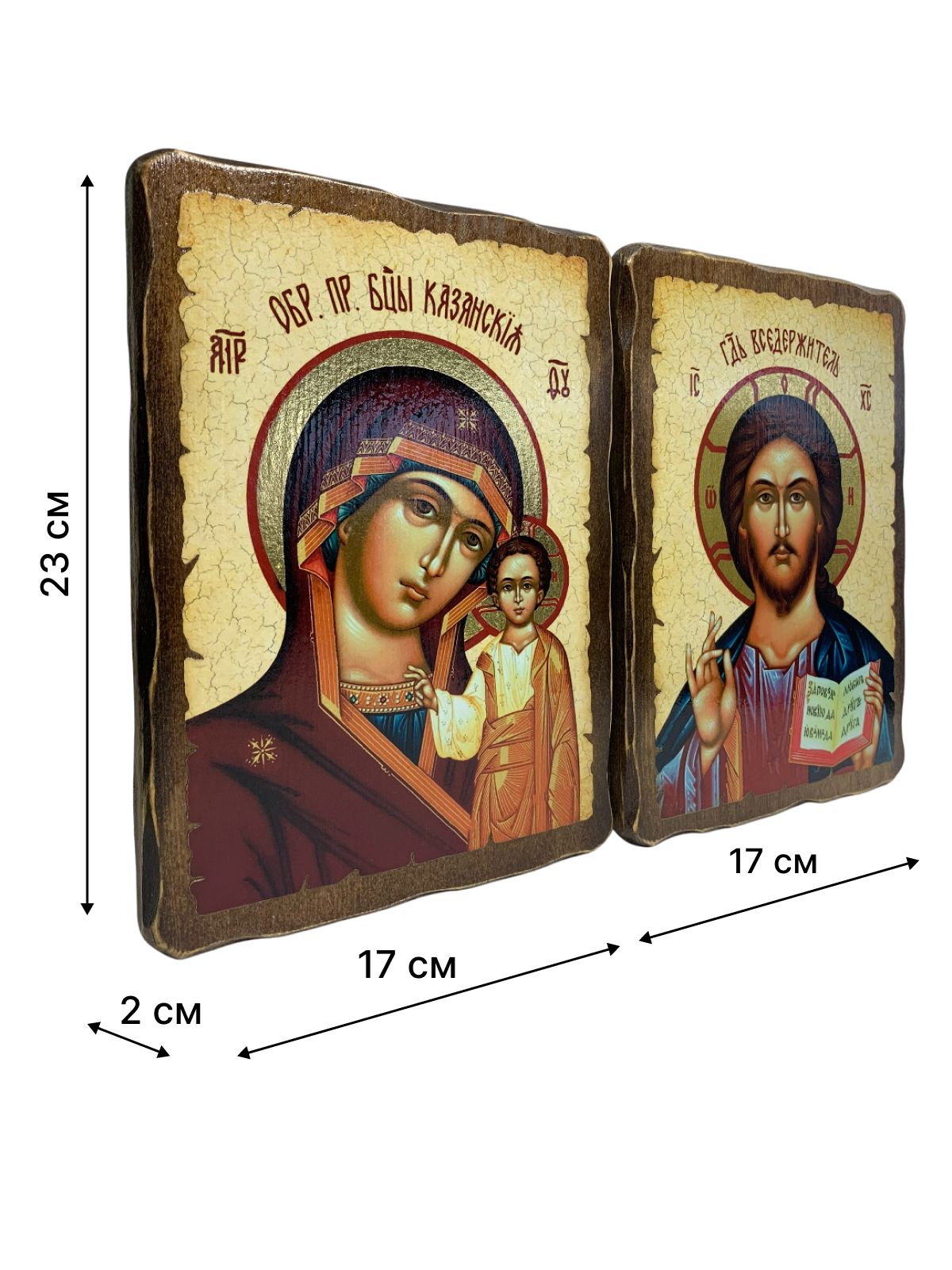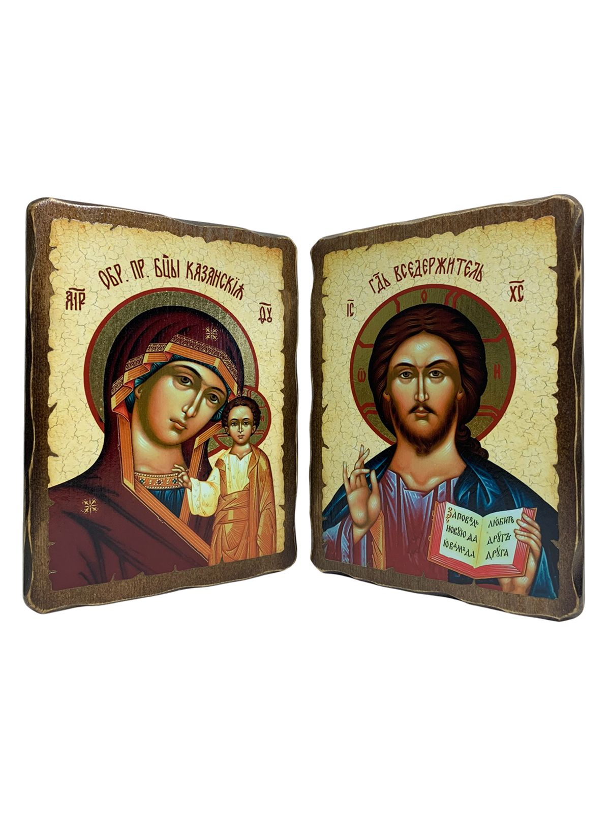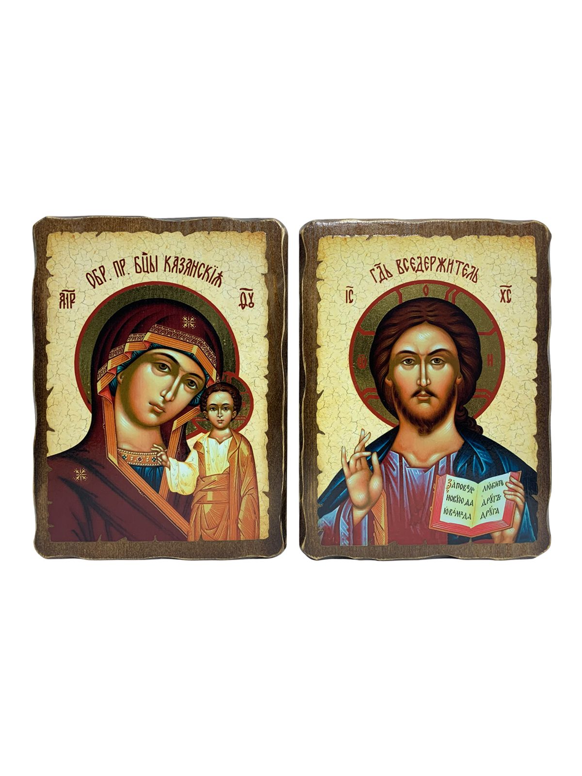 Венчальные иконы Спаситель и Казанская на дереве под старину 17х23 см