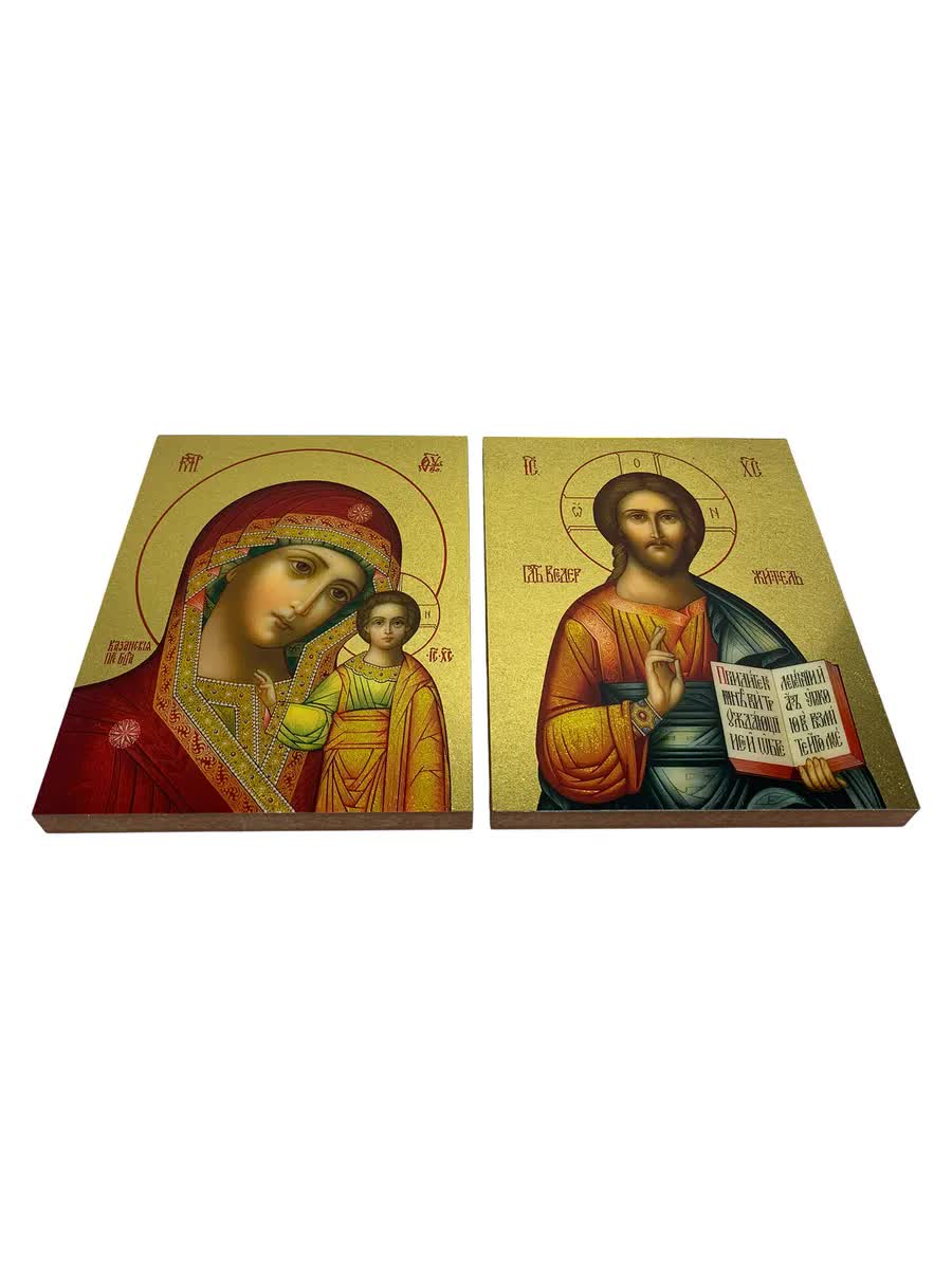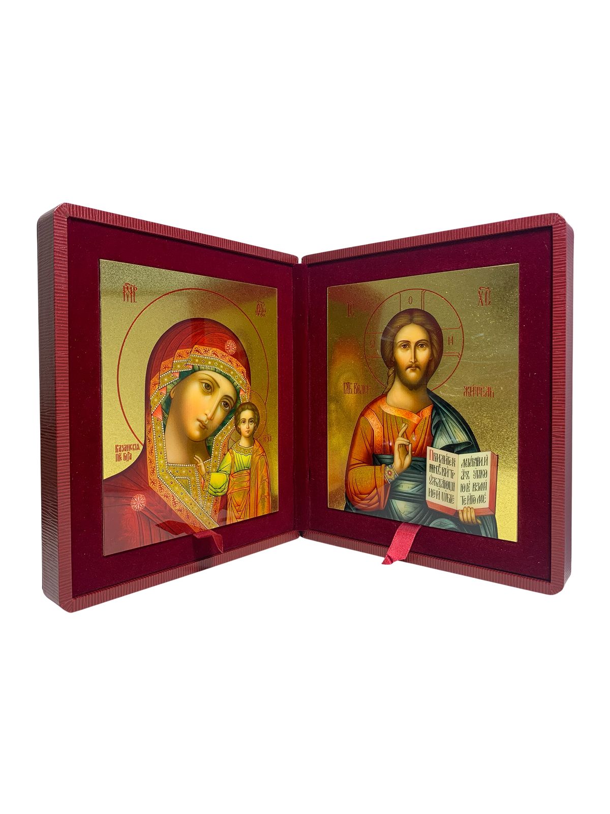 Венчальные иконы Спаситель и Казанская с золочением УЛ 13х16 в складне "тростник"
