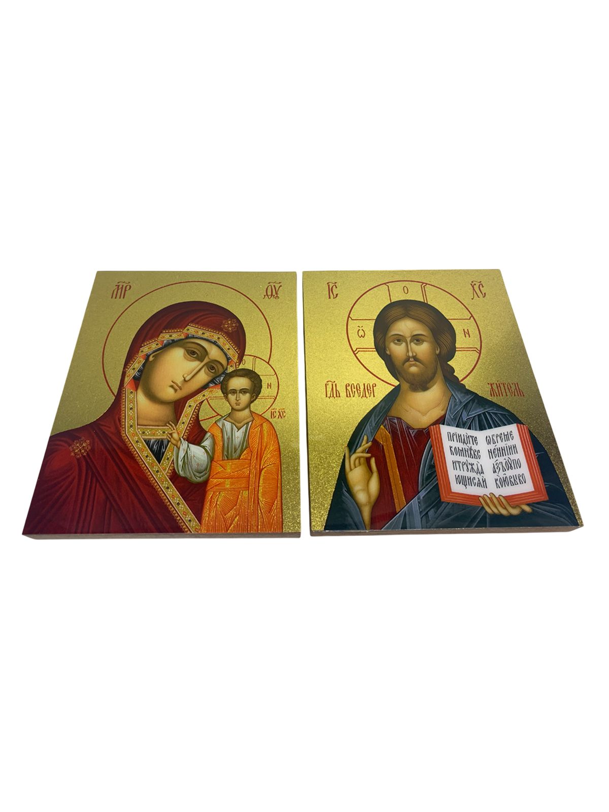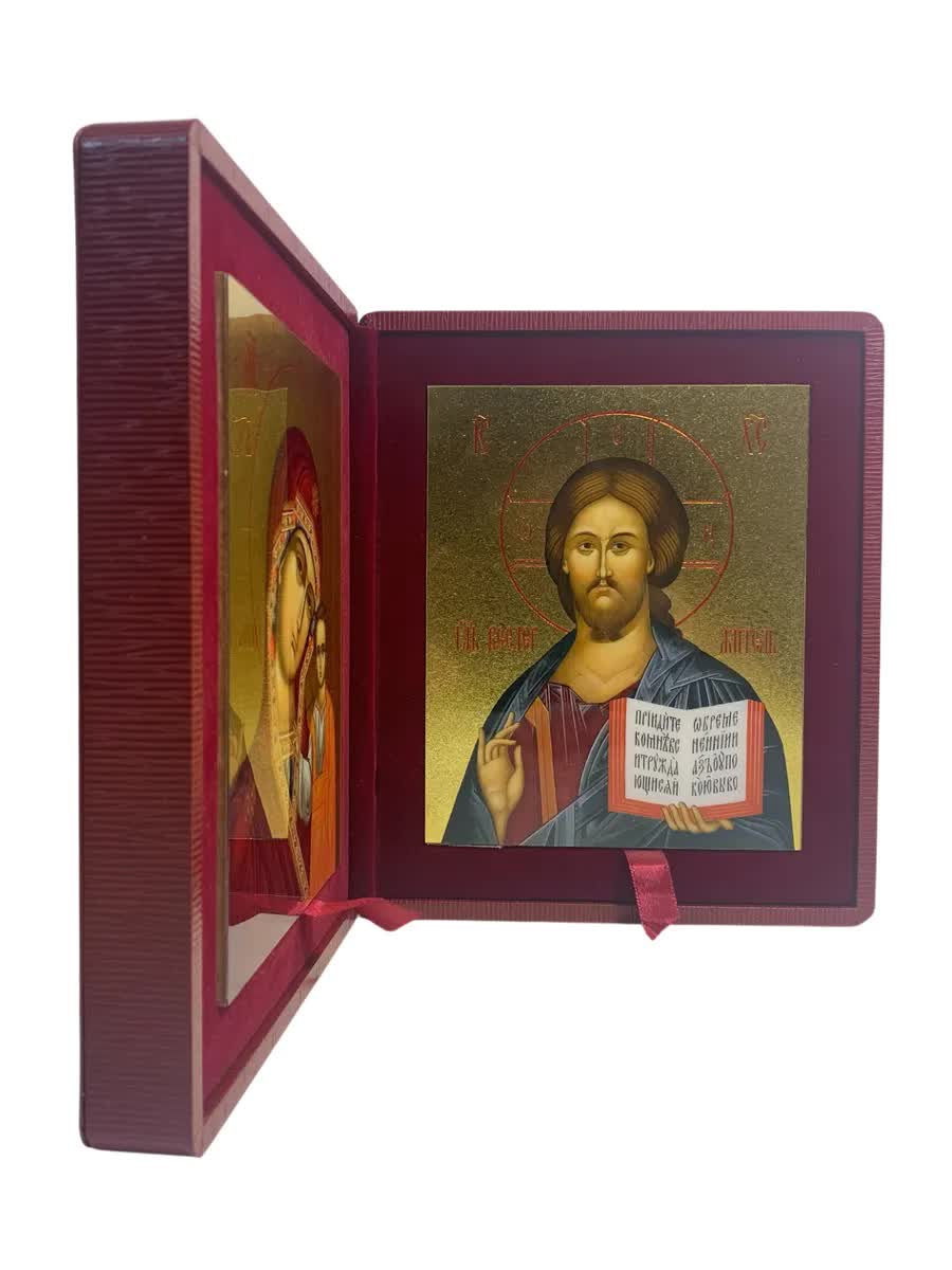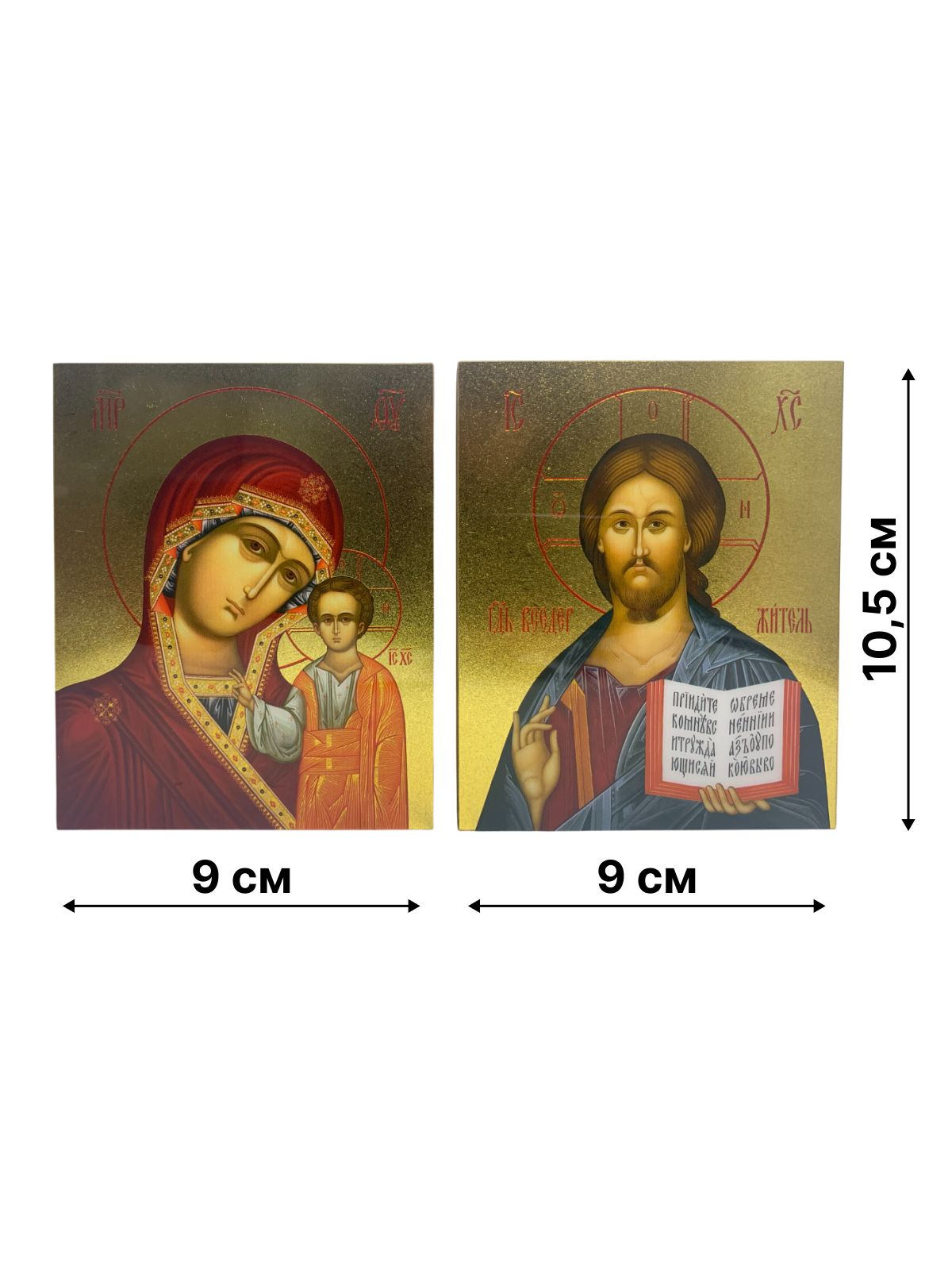 Венчальные иконы Спаситель и Казанская с золочением УЛ 9х10,5 в складне "тростник"