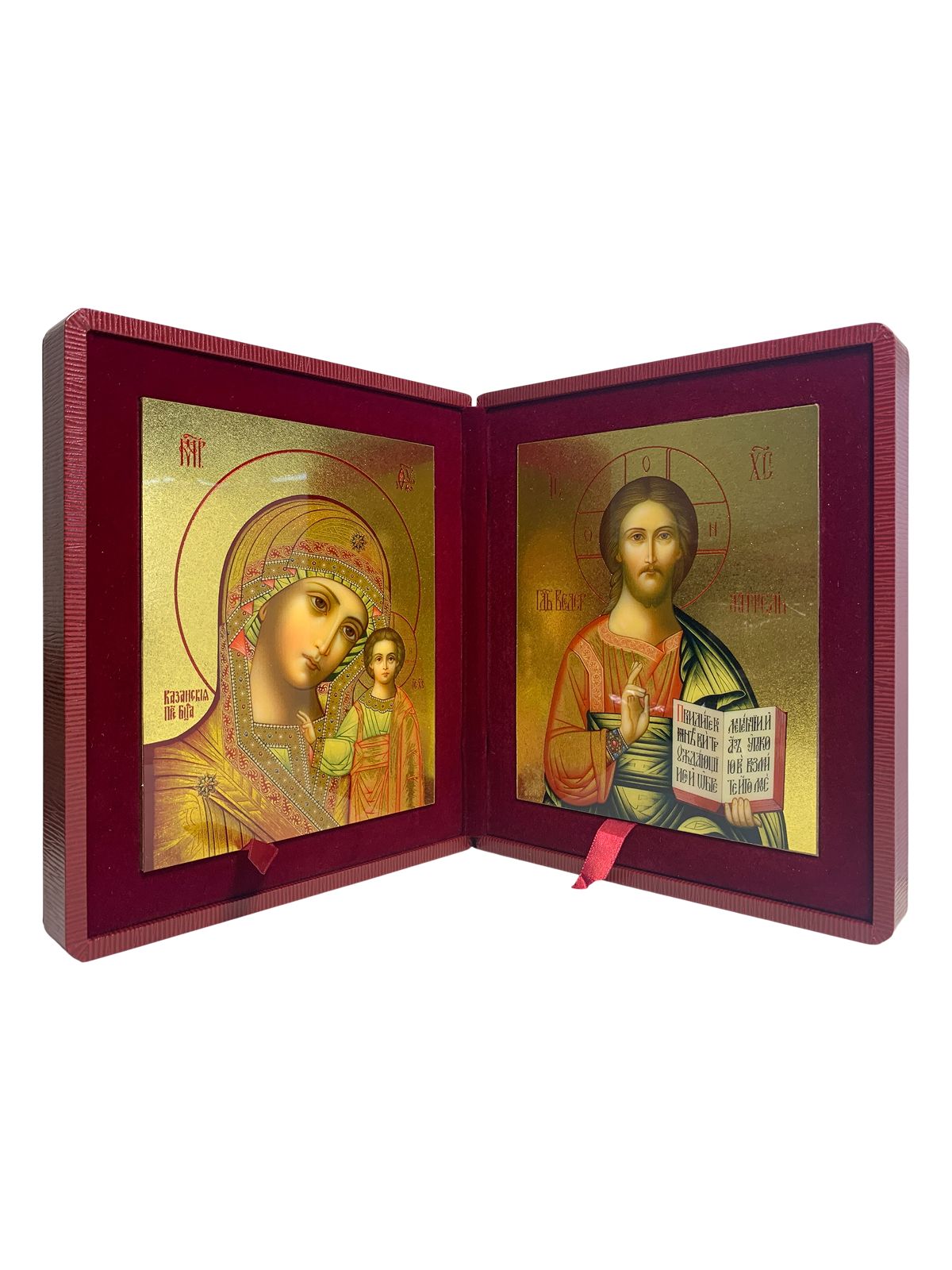 Венчальные иконы Спаситель и Казанская с золочением УЛ 9х10,5 в складне "тростник"