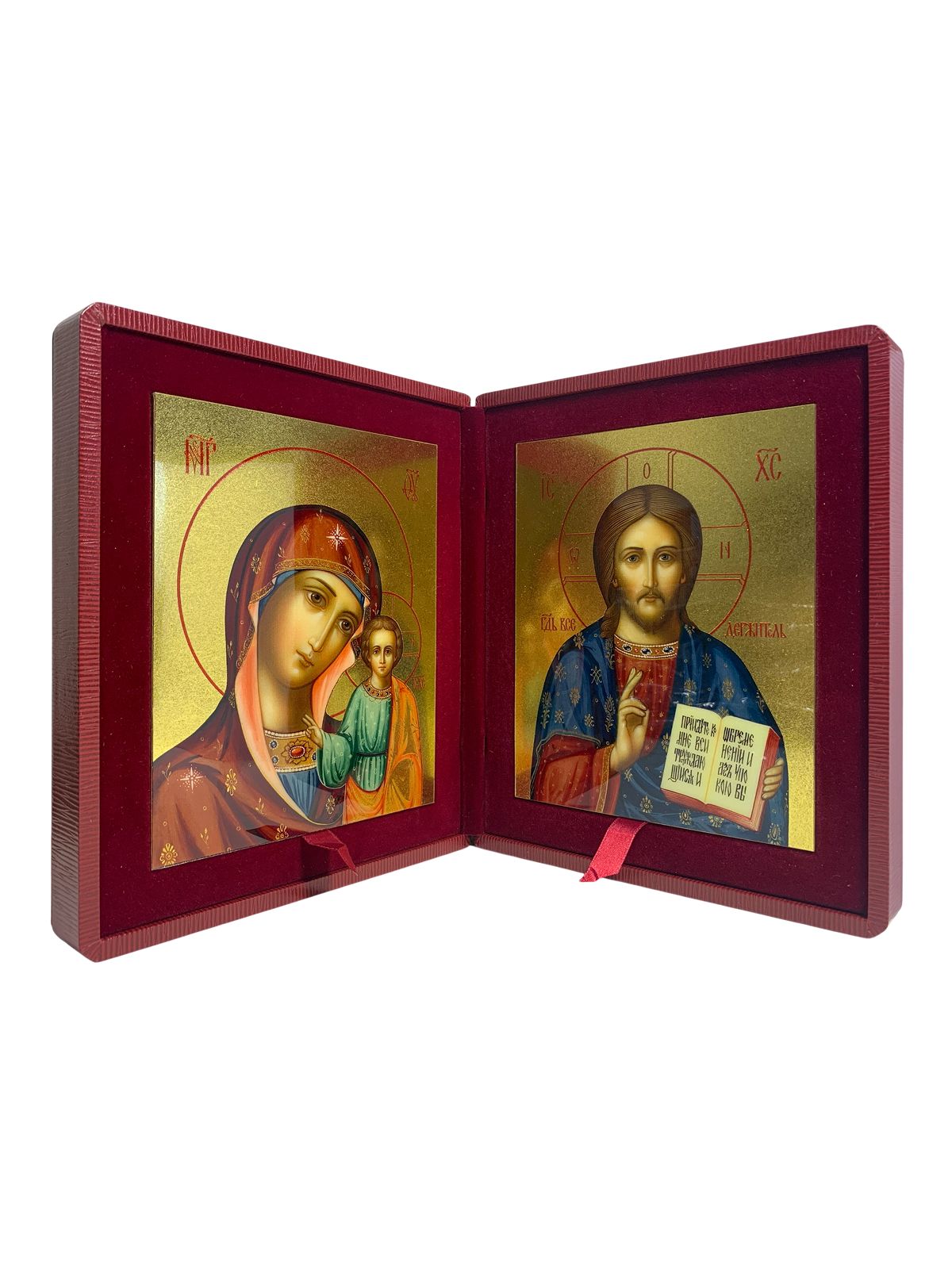 Венчальные иконы Спаситель и Казанская с золочением УЛ 9х10,5 в складне "тростник"
