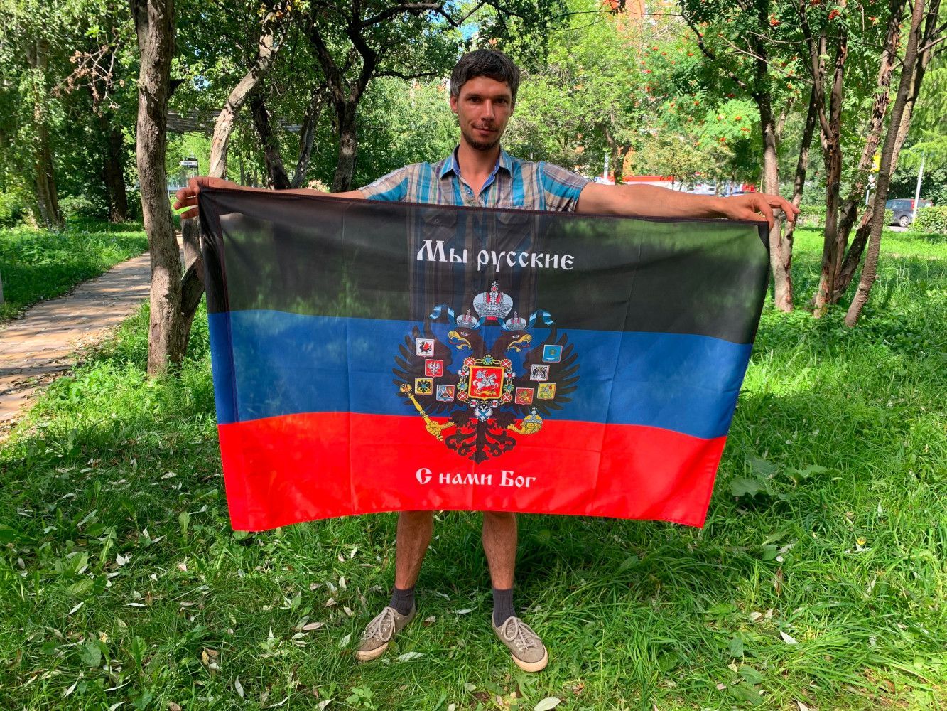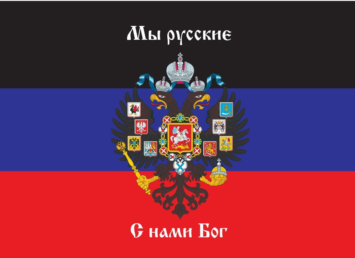 Флаг 073 Новороссия ДНР_Мы русские с нами Бог, 90х135 см, материал шелк для помещений