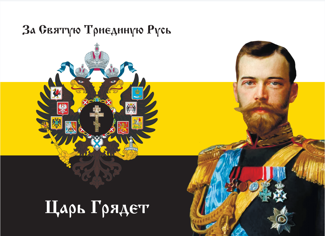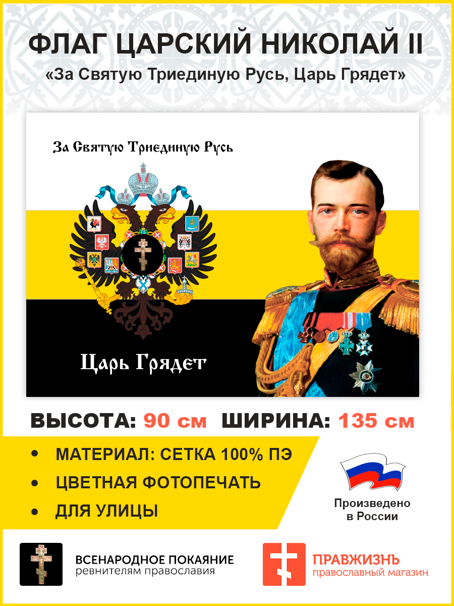 Флаг 002 "За святую триединую Русь, царь грядет", царский флаг, Николай 2, 90х135 см, материал сетка для улицы