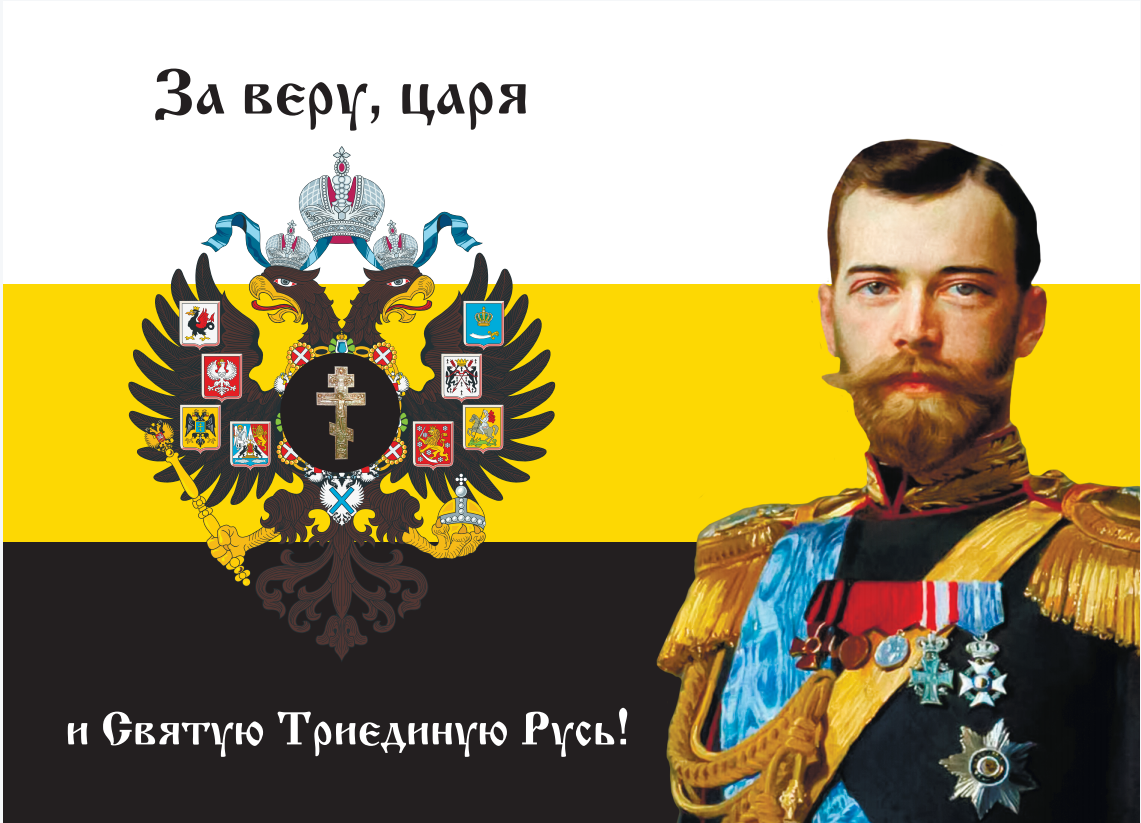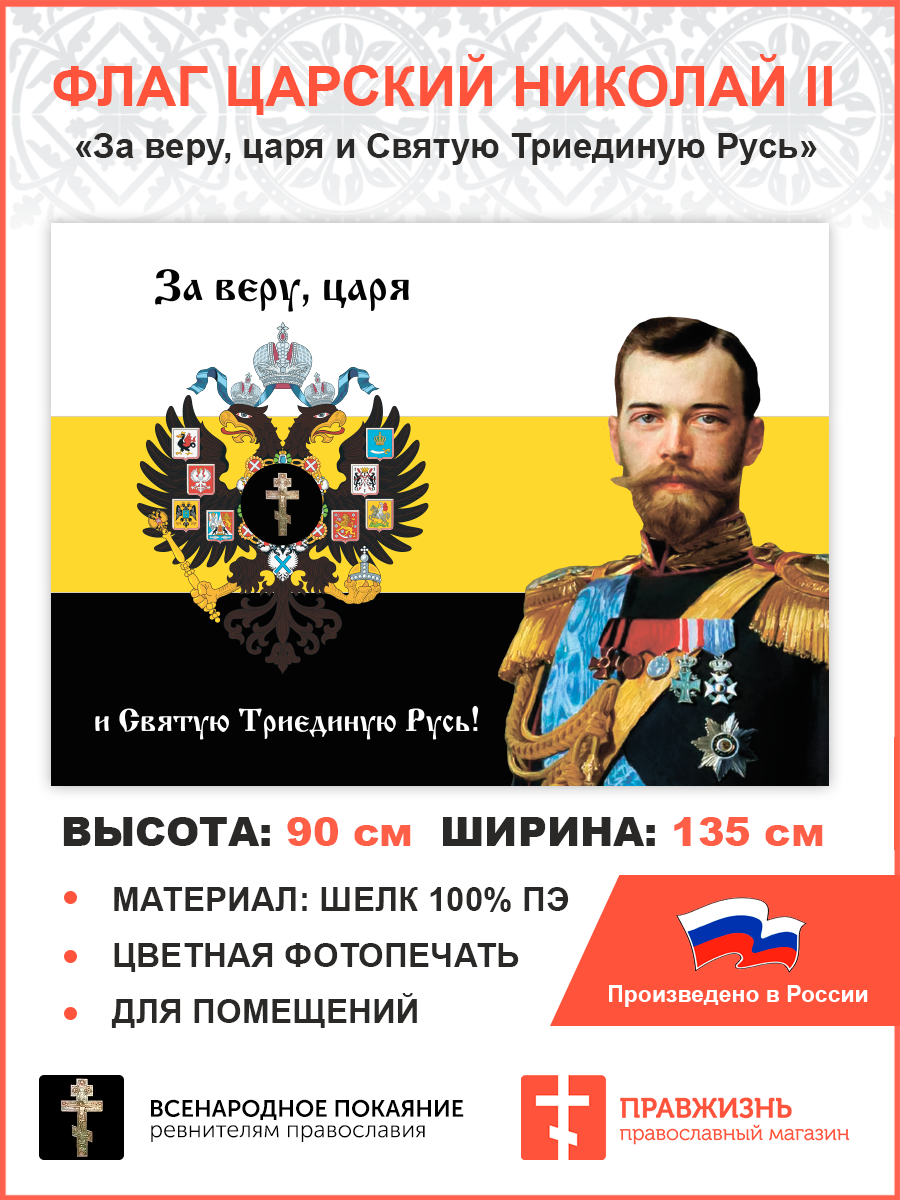Флаг 003 "За веру, царя и святую триединую Русь", царский флаг, Николай 2, 90х135 см, материал шелк для помещений
