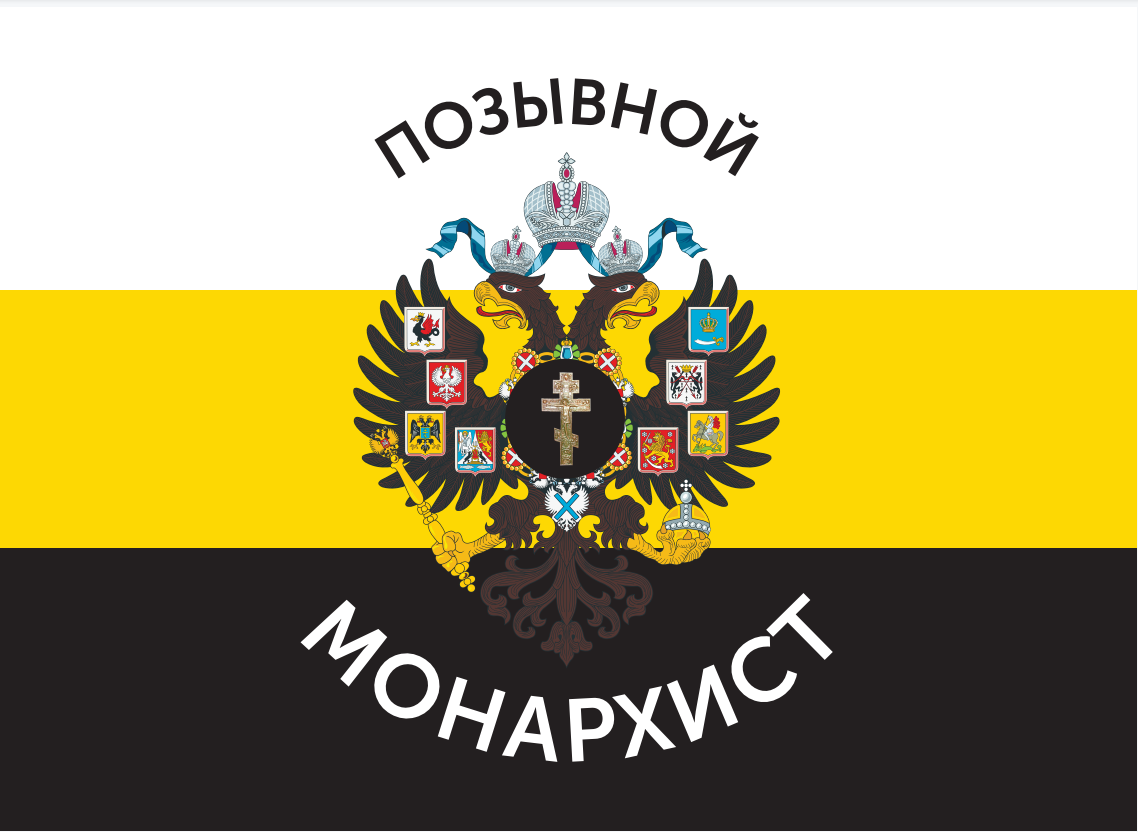 Флаг 004 "Позывной монарихист Герб двухглавый орел", царский флаг, 90х135 см, материал шелк для помещений