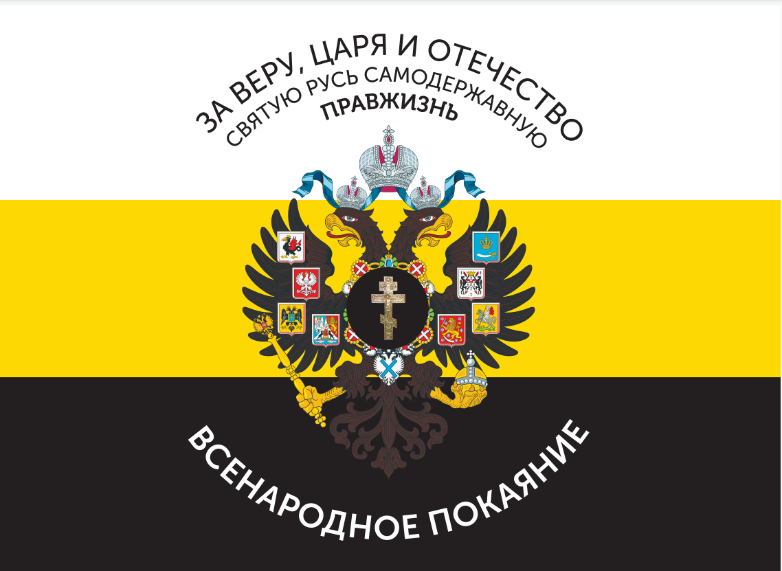 Флаг 005 "За веру, царя и отчество. Всенародное покаяние Герб двухглавый орел", царский флаг, 90х135 см, материал сетка для улицы