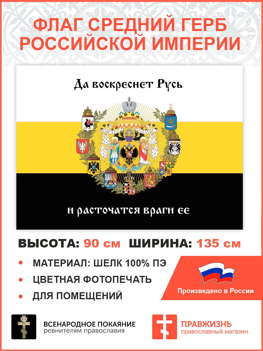Флаг 007 Средний герб Российской империи, 1882, царский флаг, 90х135 см, материал шелк для помещений