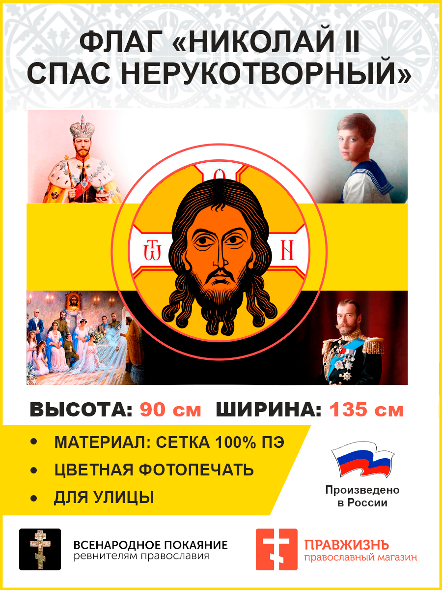 Флаг 016 4 иконы царя Николая 2 и его семьи, 90х135 см, материал сетка для улицы