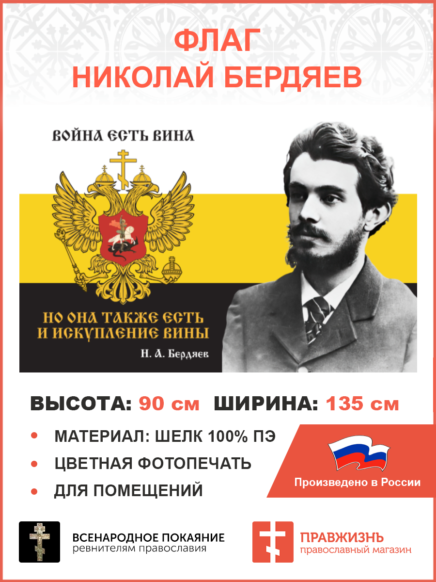 Флаг 079 Бердяев Война есть вина но она также есть и искупление вины 90х135 см материал шелк для помещений