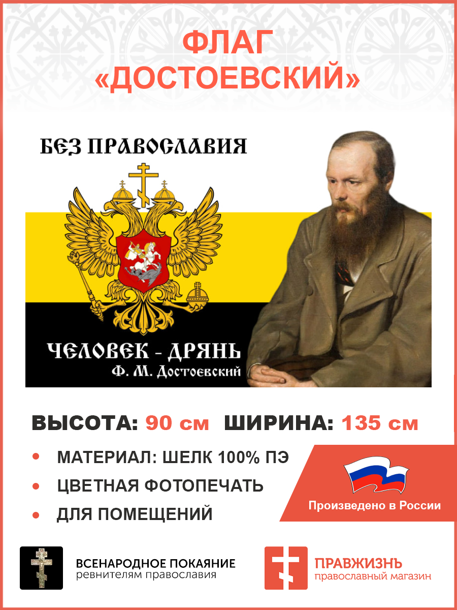 Флаг для помещений Империя РФ Достоевский 90х135см 086
