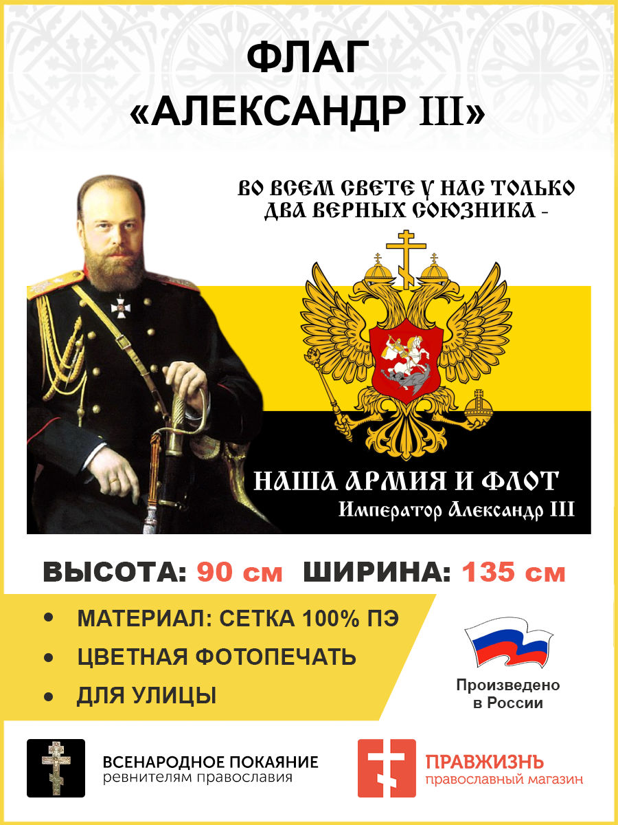Флаг 097 Александр 3 Наша армия и флот, 90х135, материал сетка для улицы
