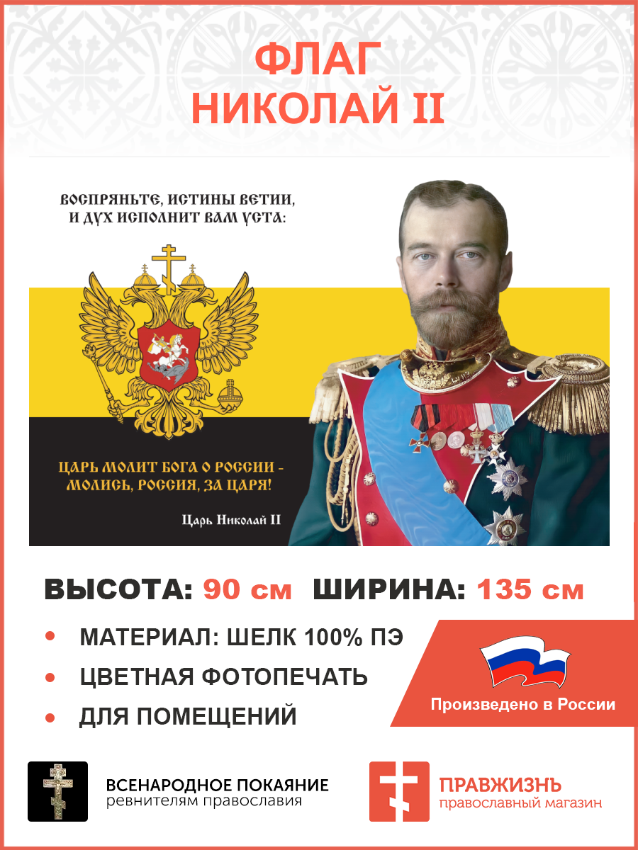 Флаг 151 Николай II Молись Россия за Царя 90х135 материал шелк для помещений