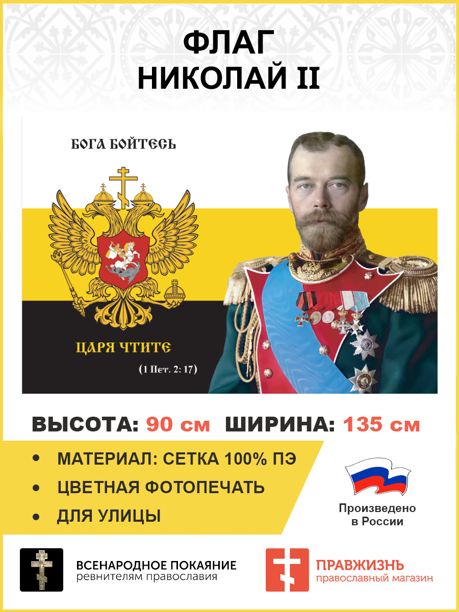 Флаг 172 Николай II Бога бойтесь, царя чтите 90х135 материал сетка для улицы