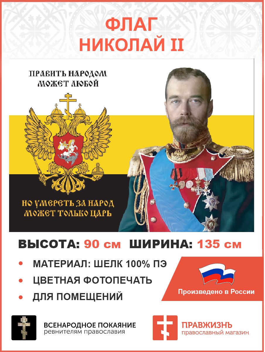 Флаг 181 Николай II Умереть за народ может только царь 90х135 материал шелк для помещений