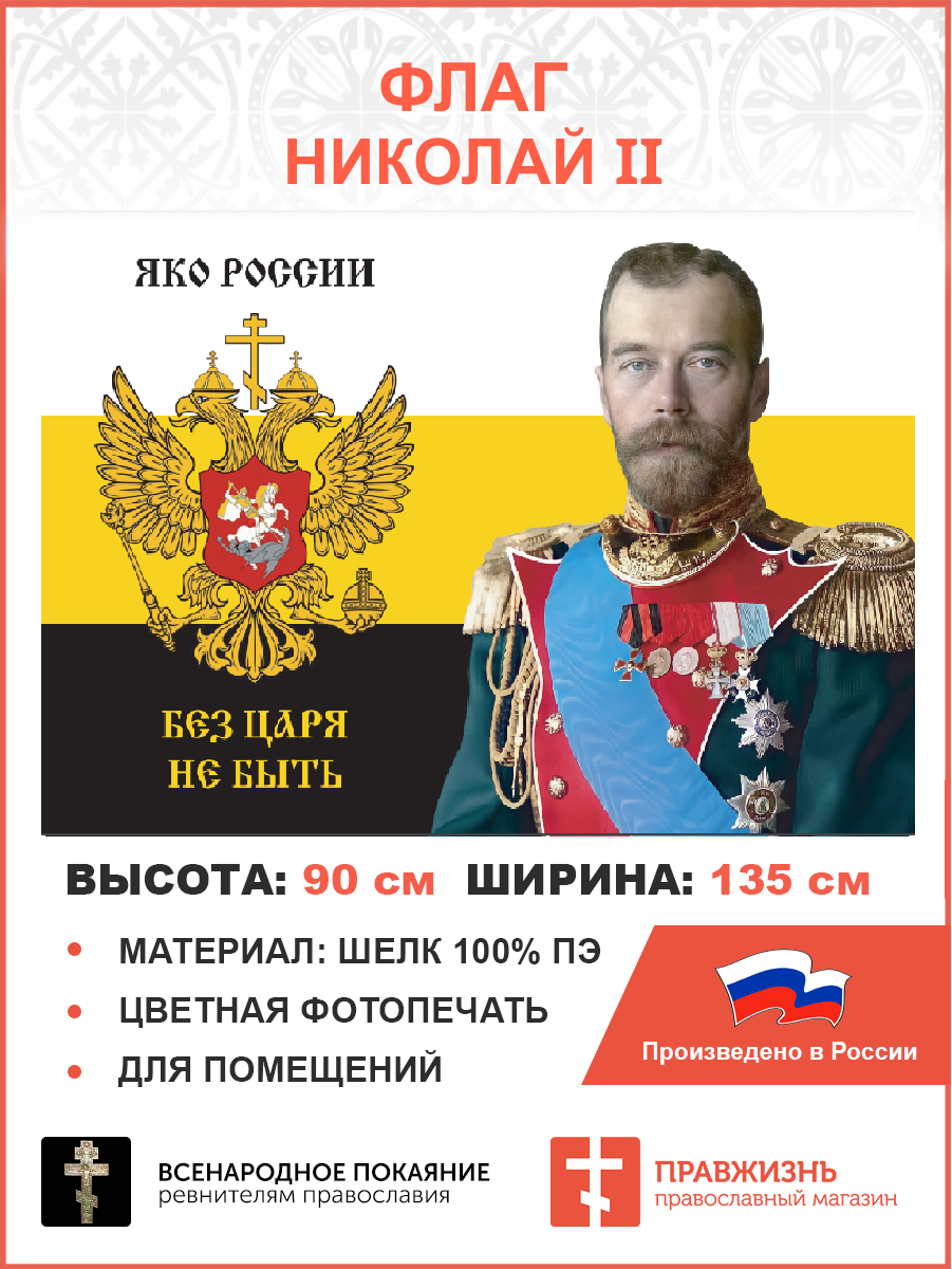 Флаг 183 Николай II Яко России без Царя не быть 90х135 материал шелк для помещений
