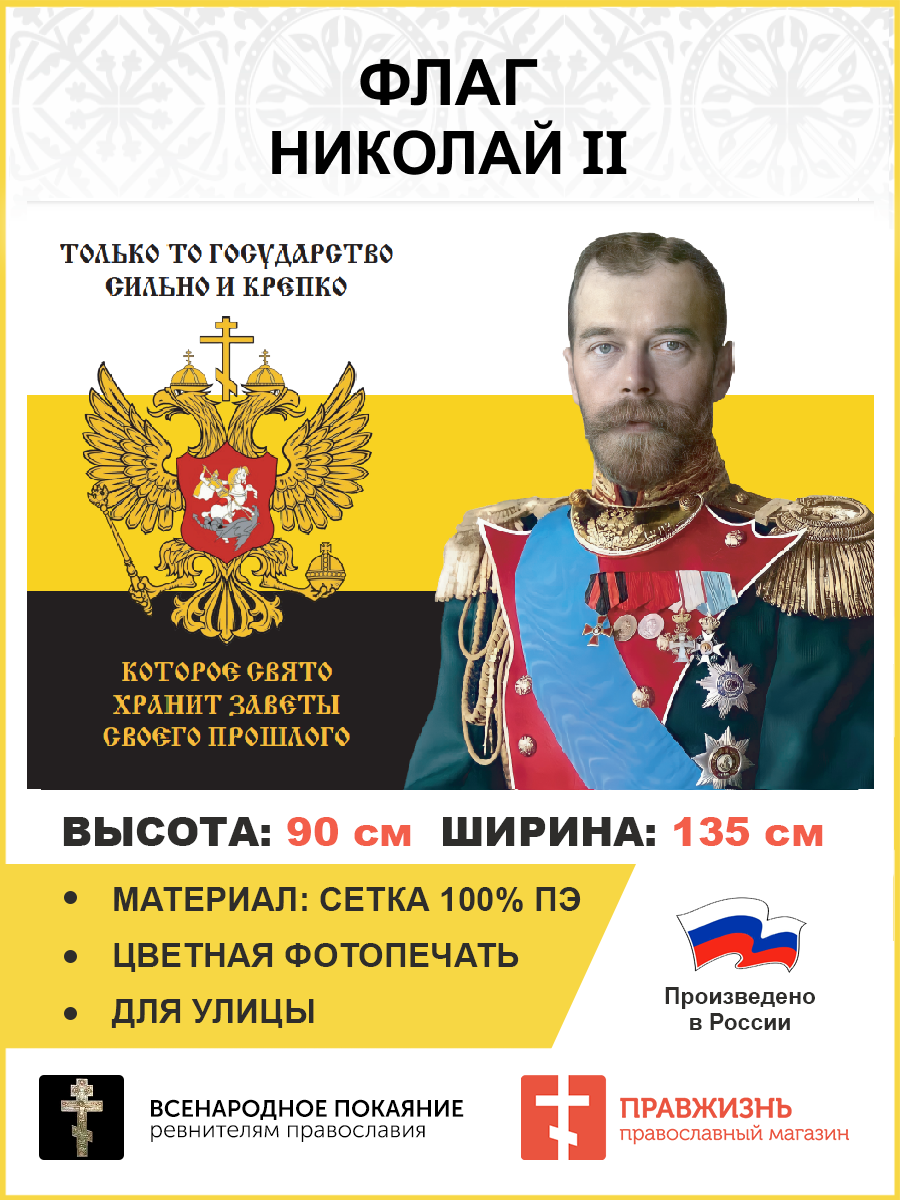Флаг 185 Николай II Только то государство сильно и крепко, которое свято хранит заветы 90х135 материал сетка для улицы