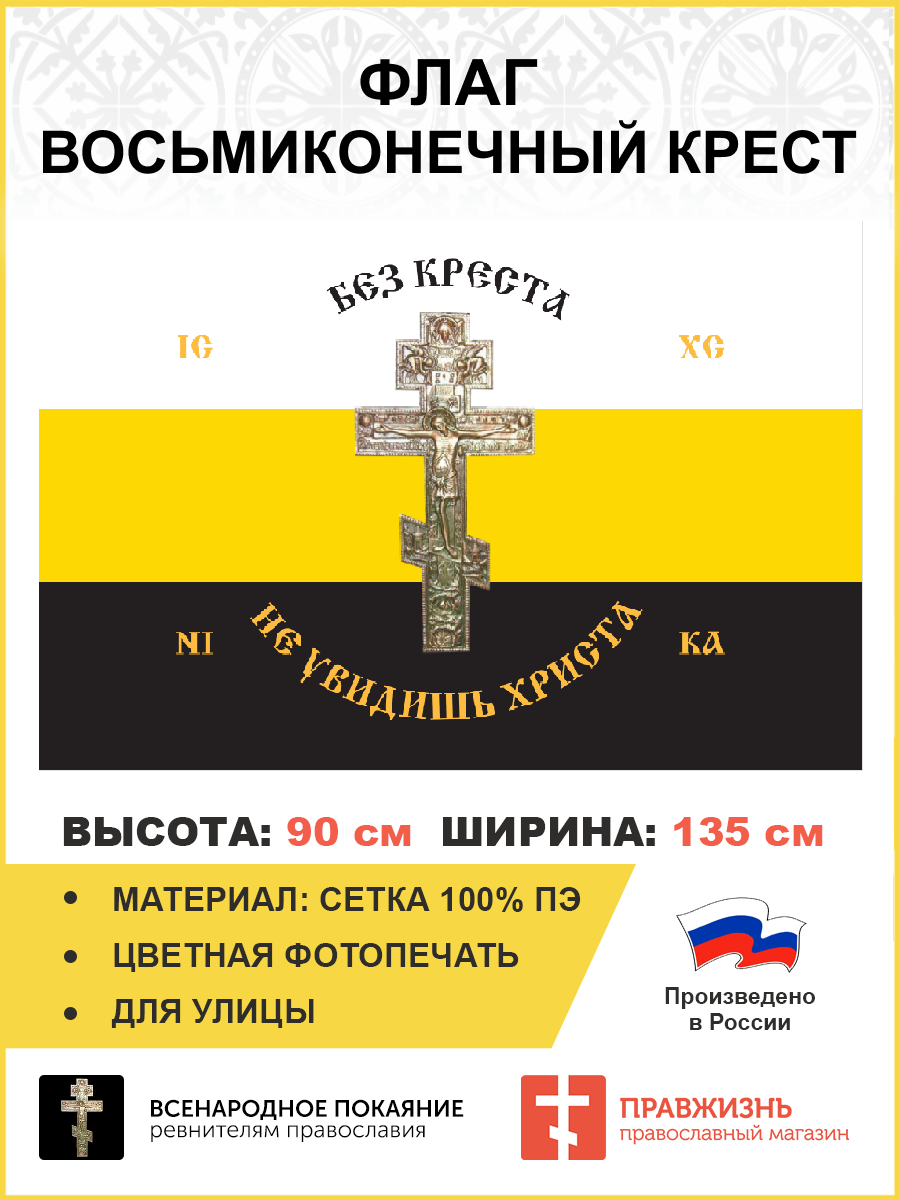 Флаг 232 Без Креста не увидишь Христа 90х135 материал сетка для улицы