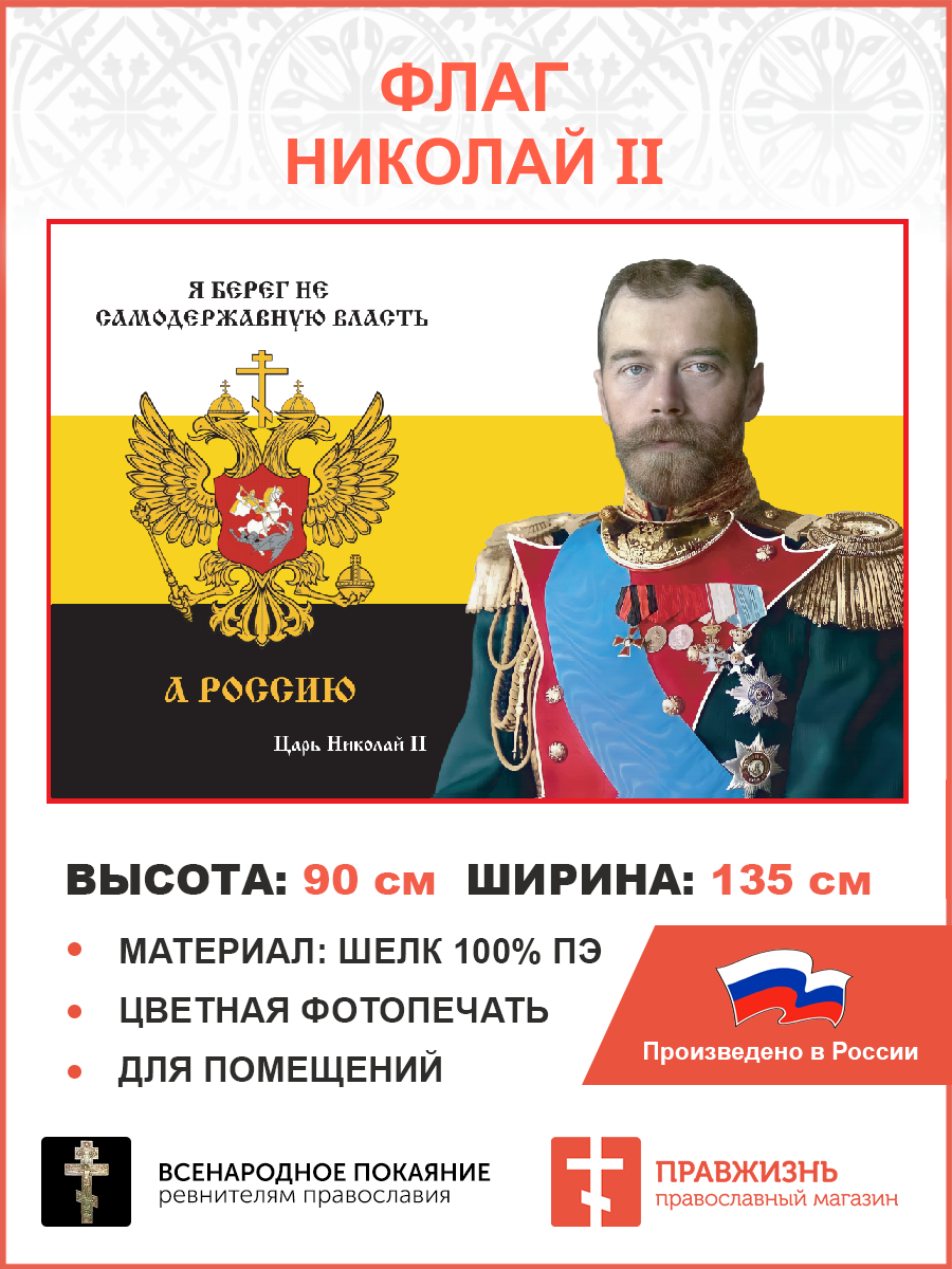 Флаг 253 Николай II Я берег не самодержавную власть а Россию триколор 90х135 материал шелк для помещ