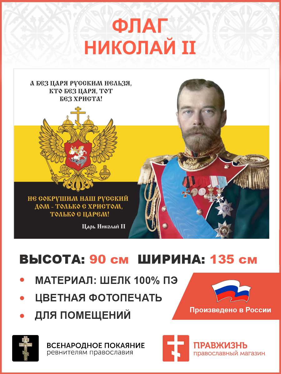 Флаг 139 Николай II Без царя русским нельзя 90х135 материал шелк для помещений