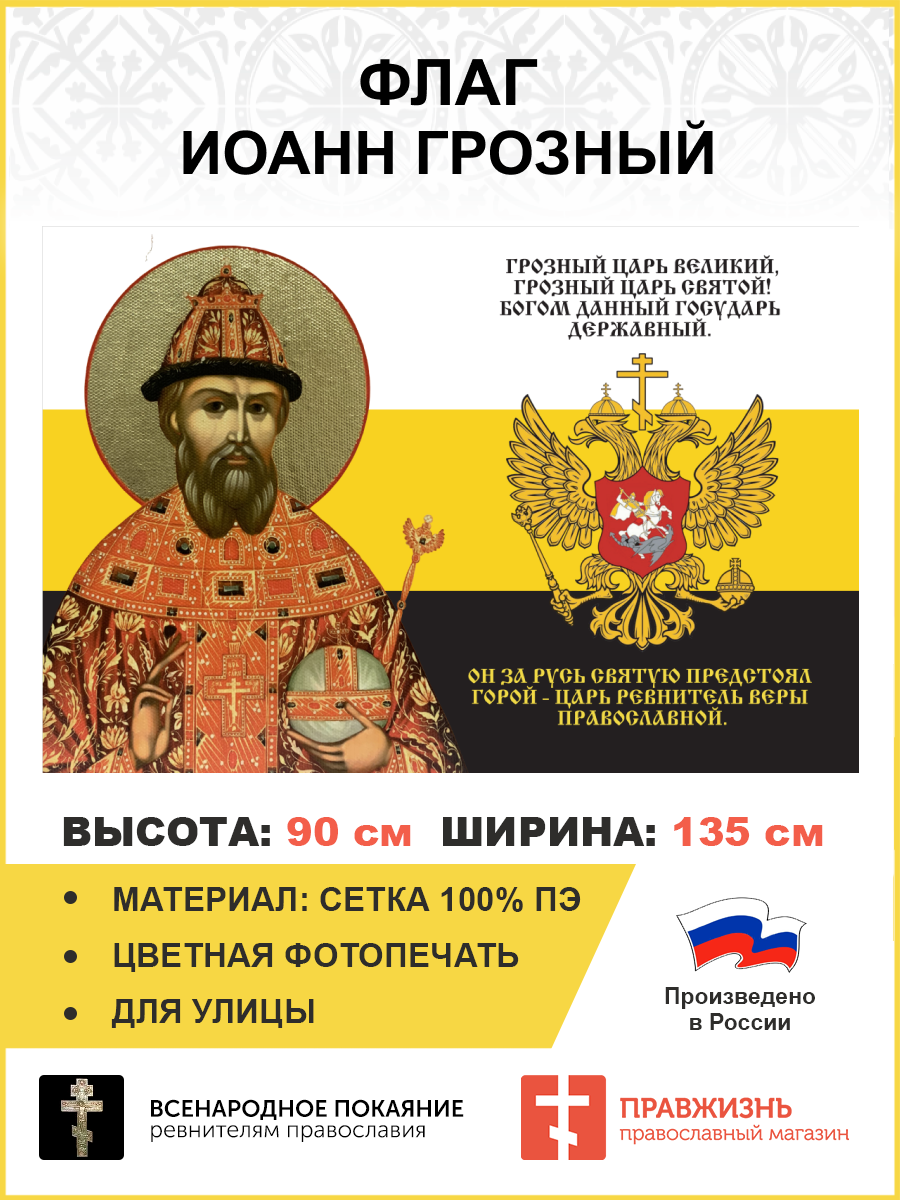 Флаг 149 Иоанн Грозный Царь ревнитель Веры Православной 90х135 материал сетка для улицы