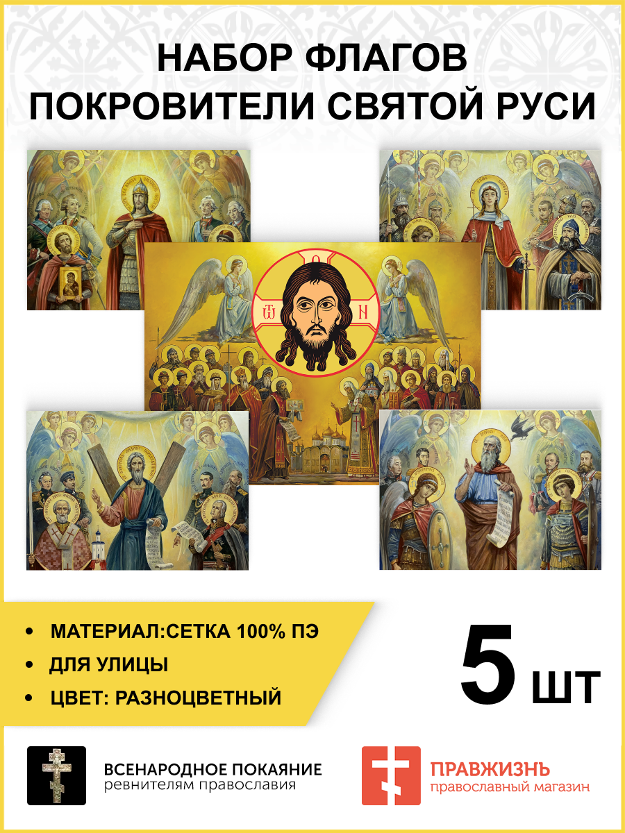 Набор флагов Покровители Святой Руси сетка 5 шт
