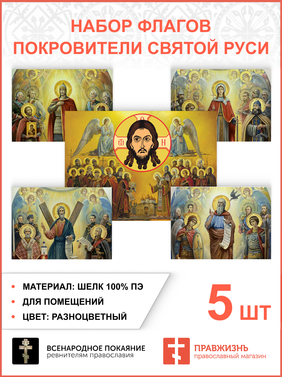 Набор флагов Покровители Святой Руси шёлк 5 шт