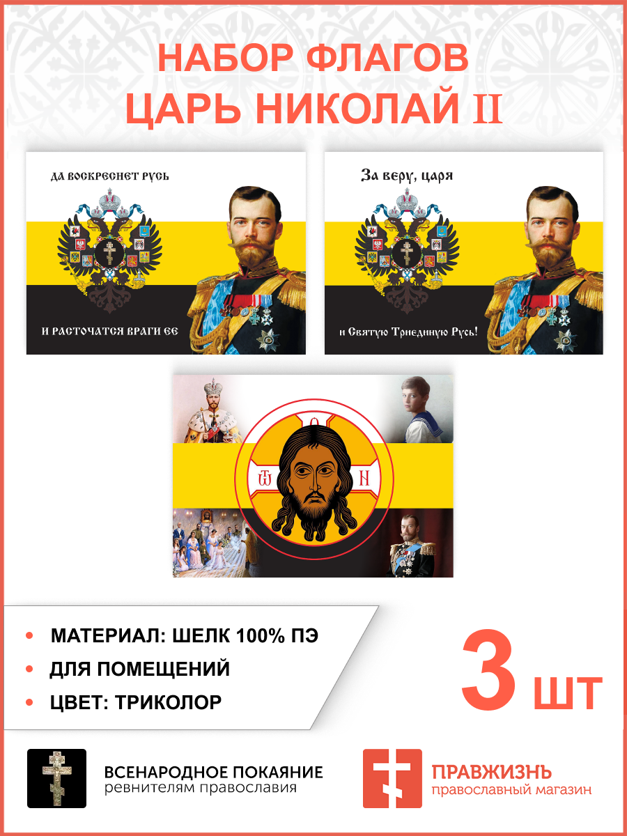 Набор флагов Царь Николай II шёлк 3 шт.