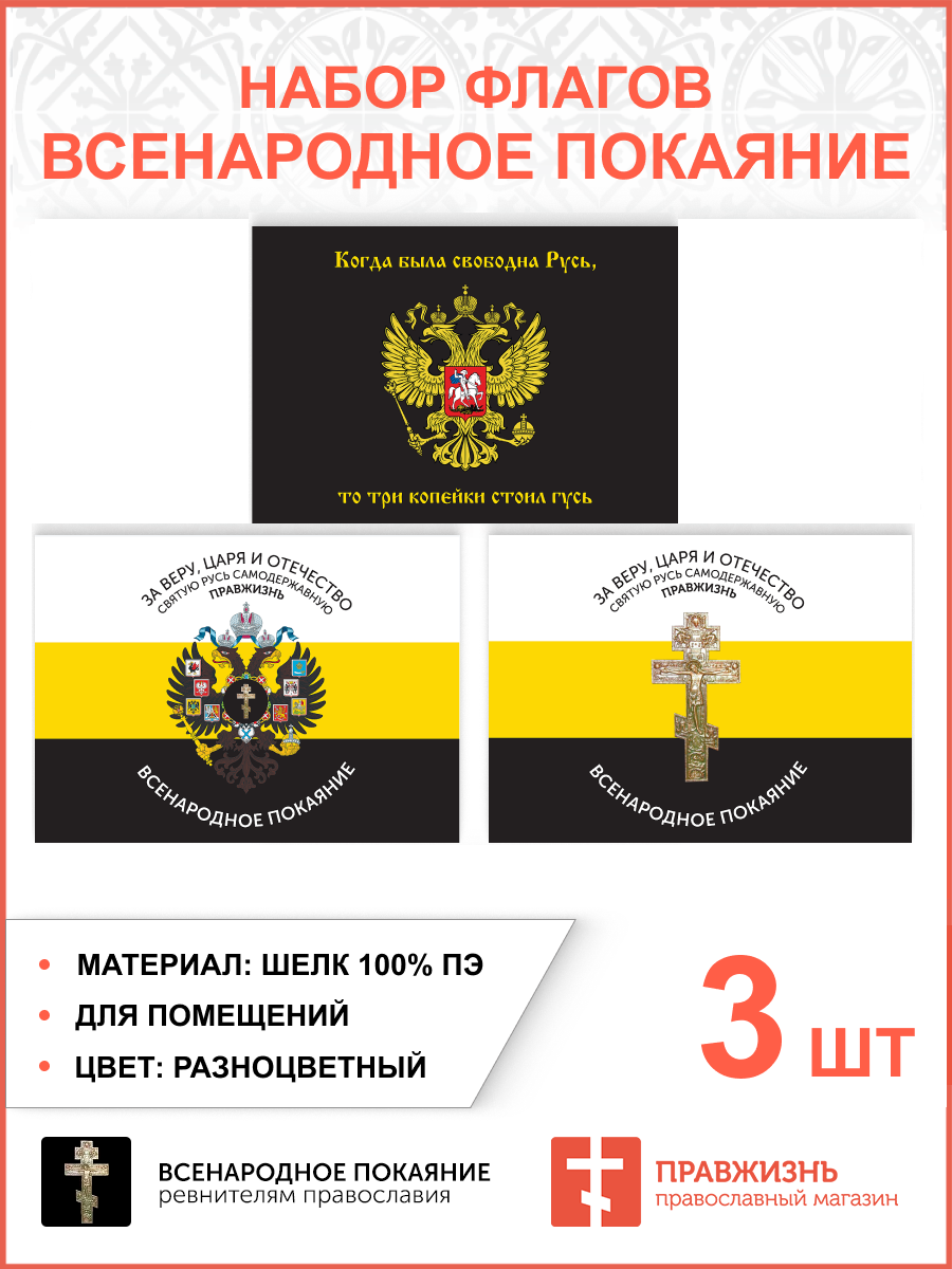 Набор флагов Всенародное Покаяние шёлк 3 шт.