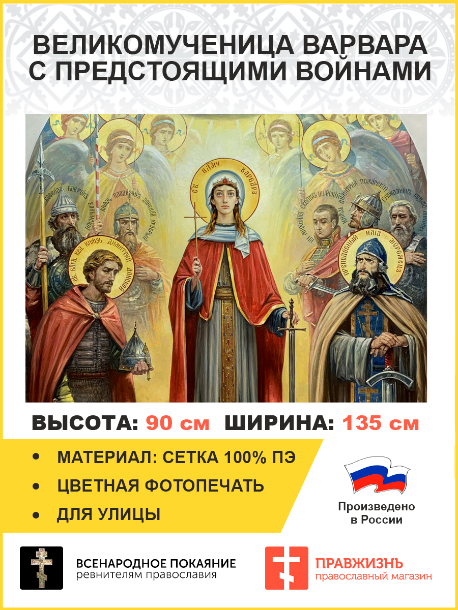 Флаг 046 Великомученица Варвара с предстоящими войнами, 90х135 см, материал сетка для улицы