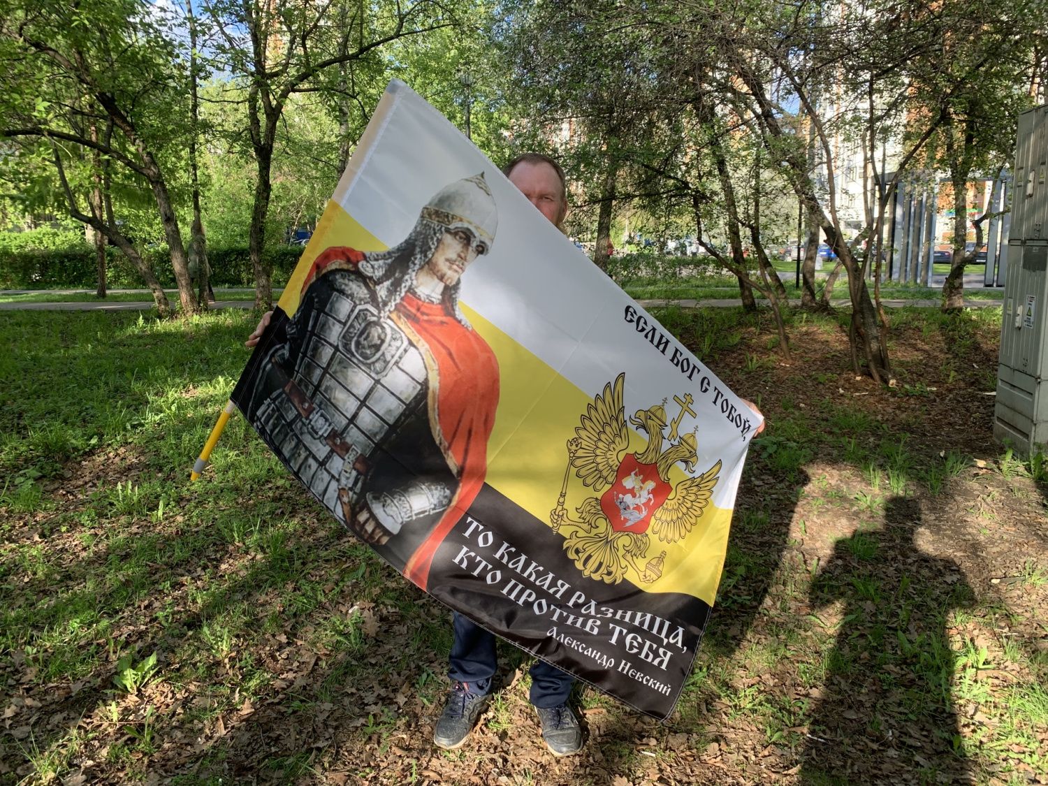 Флаг 104 Александр Невский Если Бог с тобой, то какая разница, кто против тебя 90х135 материал сетка для улицы