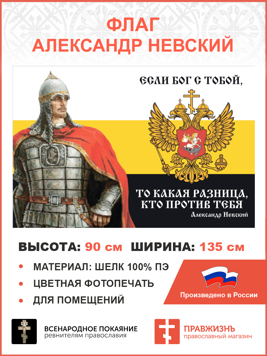 Флаг 104 Александр Невский Если Бог с тобой, то какая разница, кто против тебя 90х135 материал шелк для помещений