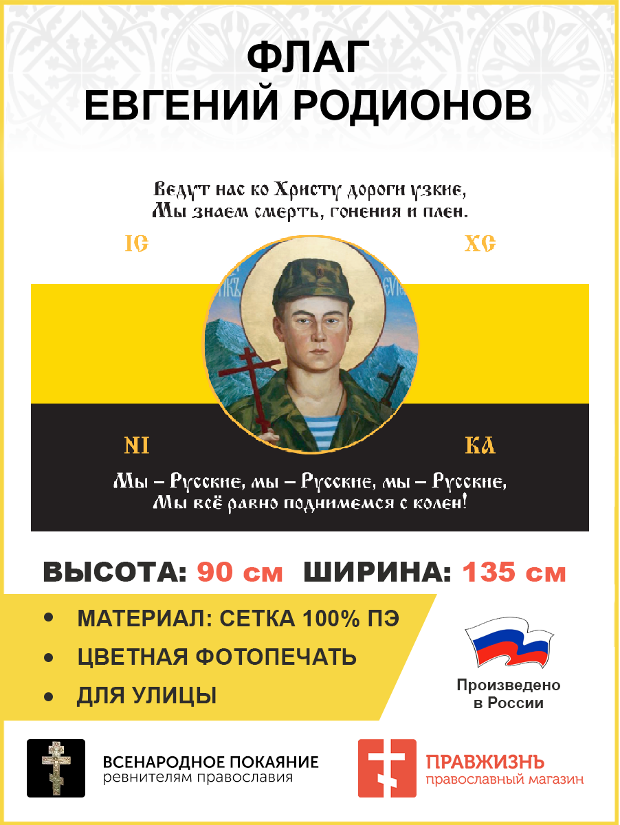 Флаг 126_1 Евгений Родионов Мы всё равно поднимемся с колен 90х135 материал сетка для улицы