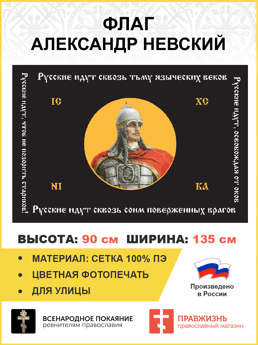 Флаг 131 Александр Невский Русские идут сквозь тьму языческих веков 90х135 материал сетка для улицы