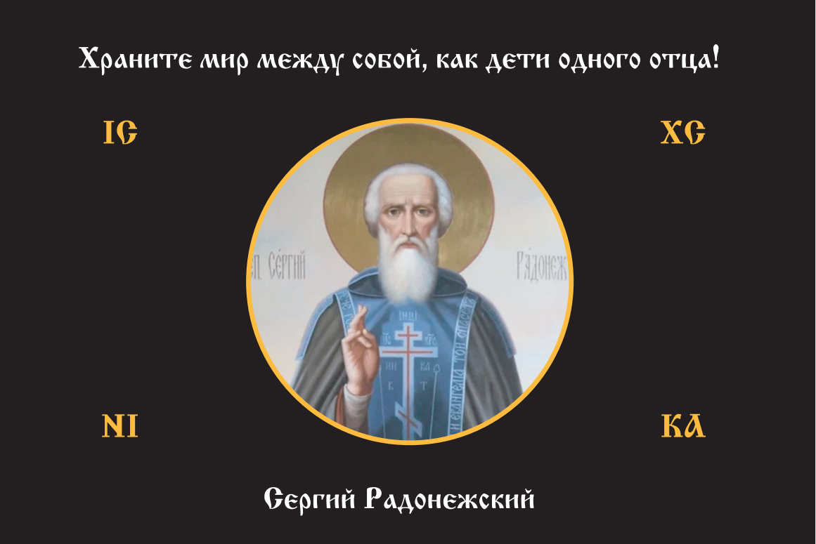 Флаг 165 Сергий Радонежский Храните мир между собой черный 90х135 материал сетка для улицы