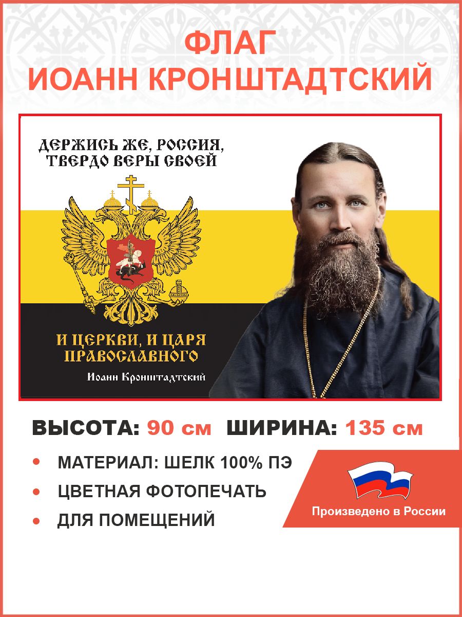 Флаг 266 Иоанн Кронштадтский Держись же Россия твердо веры своей триколор 90х135 материал шелк для п