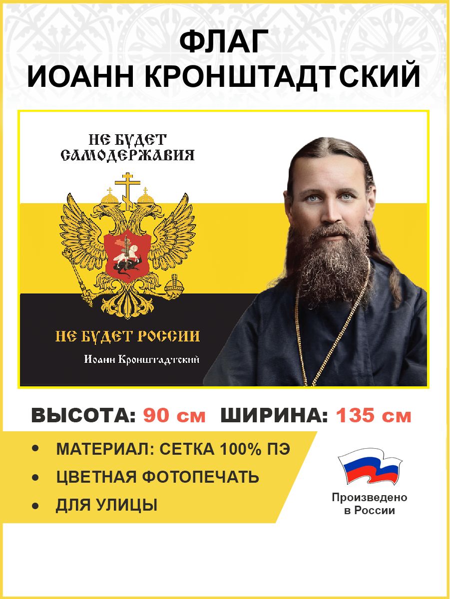 Флаг 267 Иоанн Кронштадтский Не будет самодержавия не будет России триколор 90х135 материал сетка дл