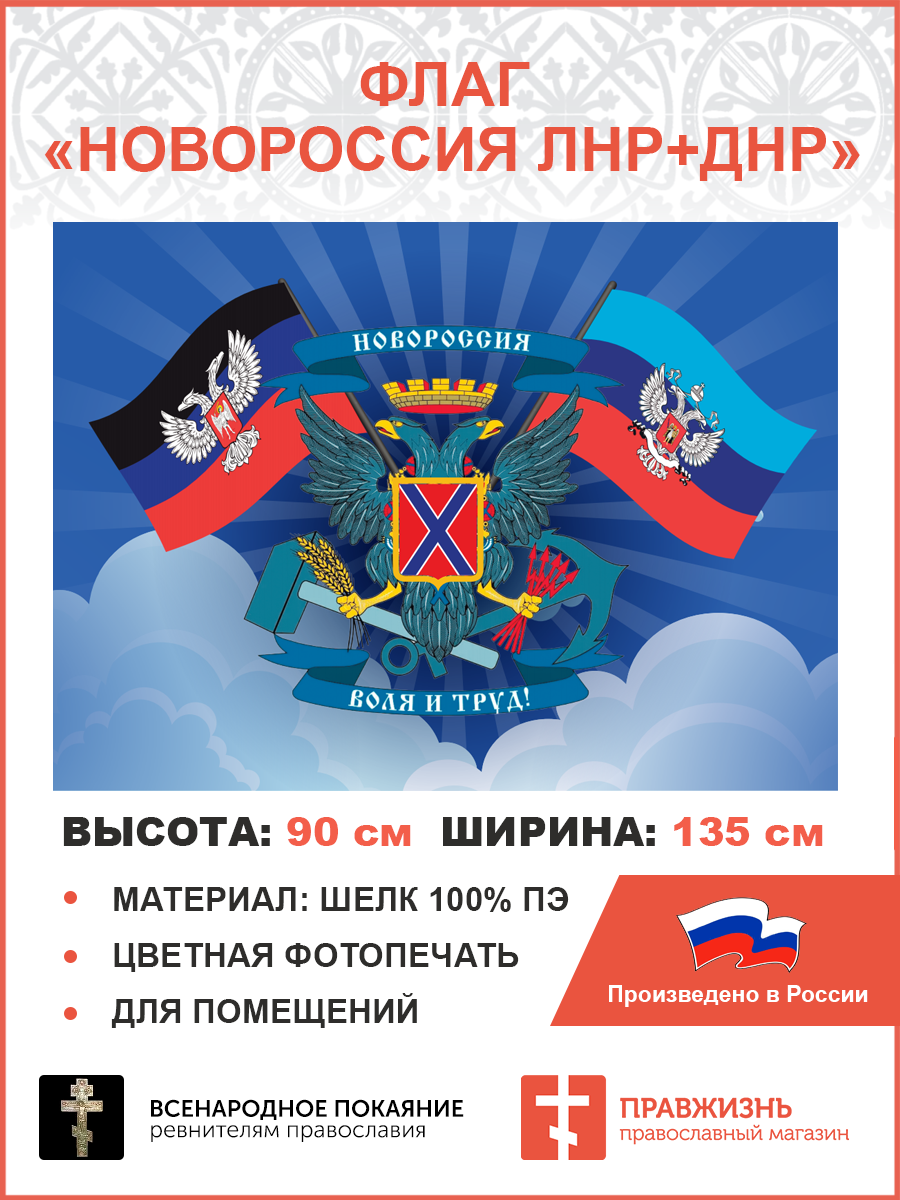 Флаг 067 Новороссия ЛНР+ДНР, 90х135 см, материал шелк для помещений