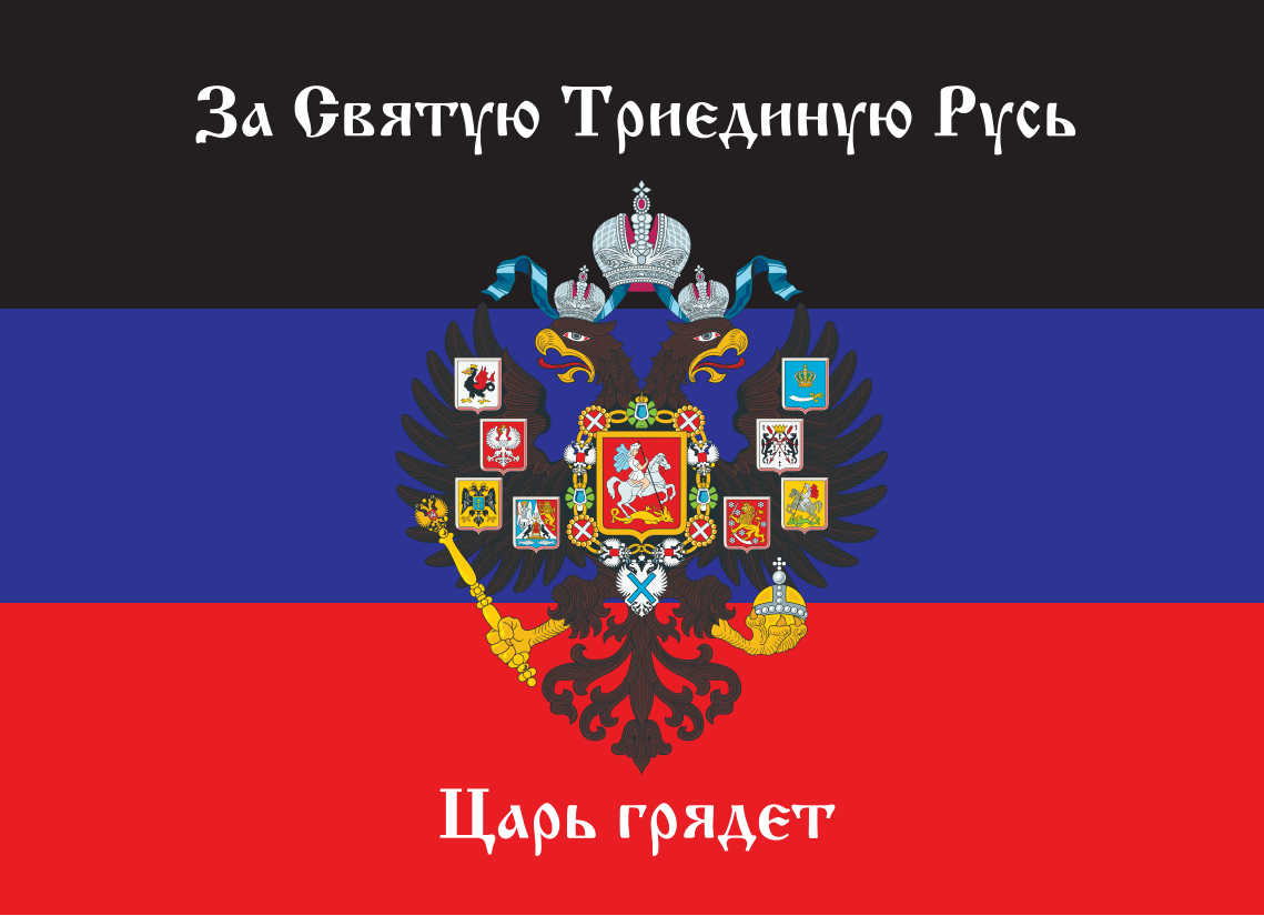 Флаг 072_Новороссия ДНР_За Святую Триединую Русь Царь грядет, 90х135 см, материал шелк для помещений