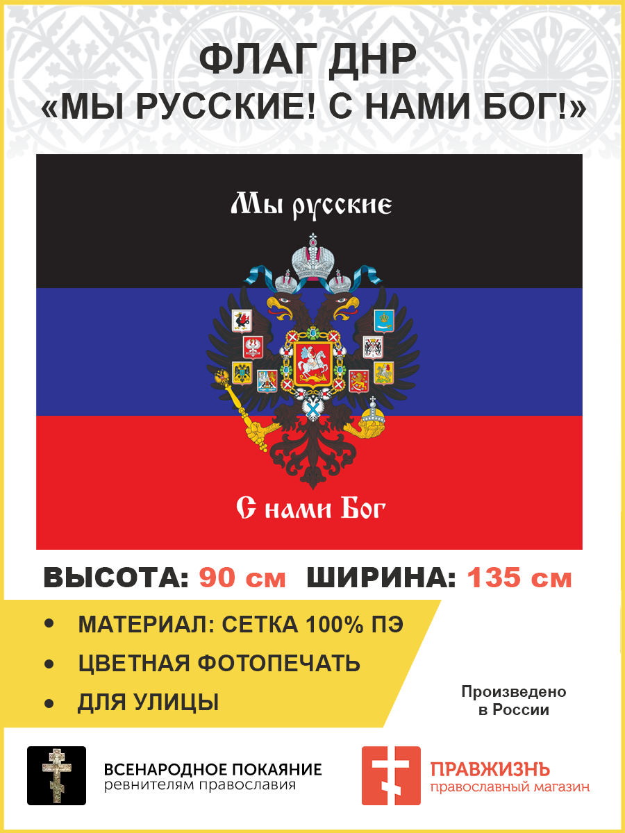 Флаг 073 Новороссия ДНР Мы русские с нами Бог, 90х135 см, материал сетка для улицы