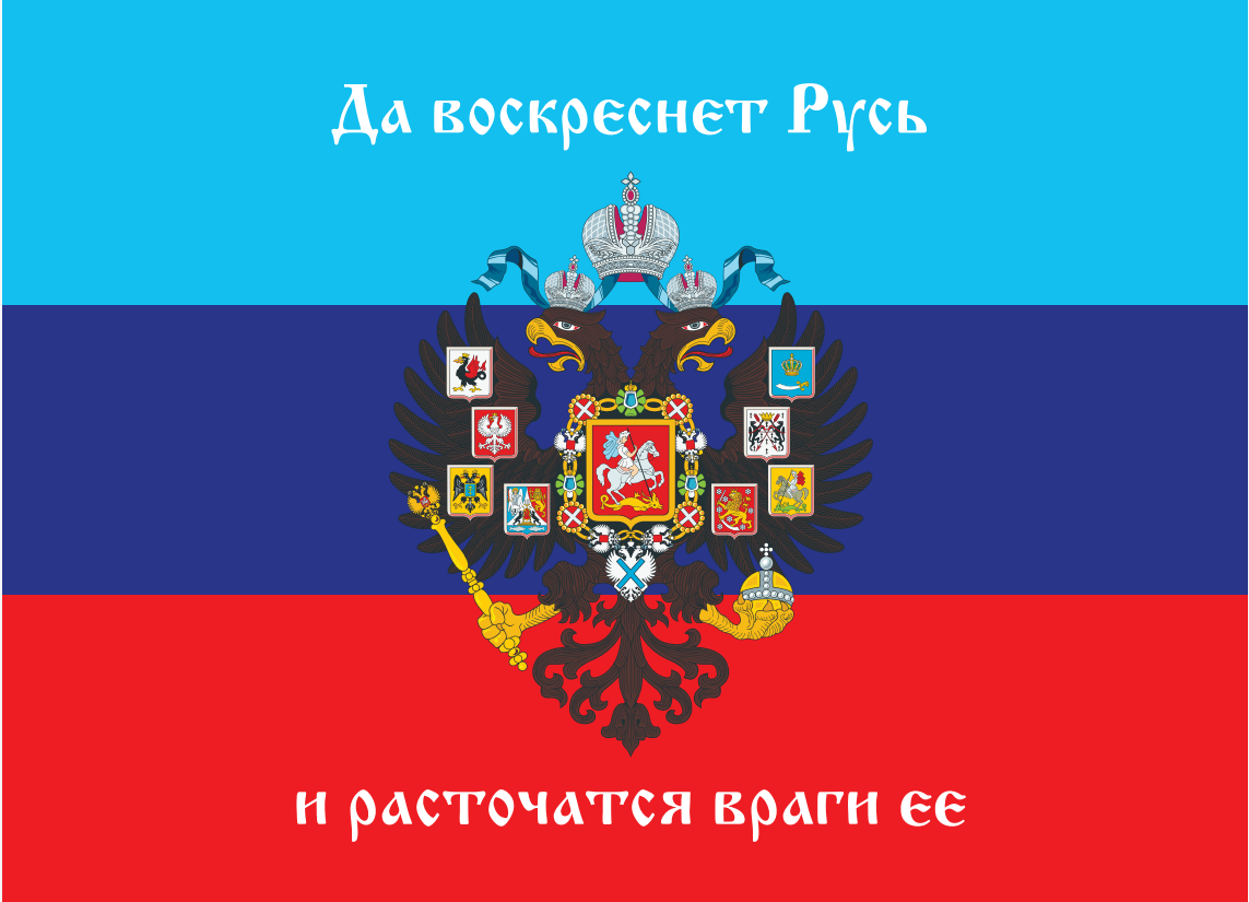 Флаг 076 Новороссия ЛНР_Да воскреснет Русь и расточатся враги ее, 90х135 см, материал шелк для помещений