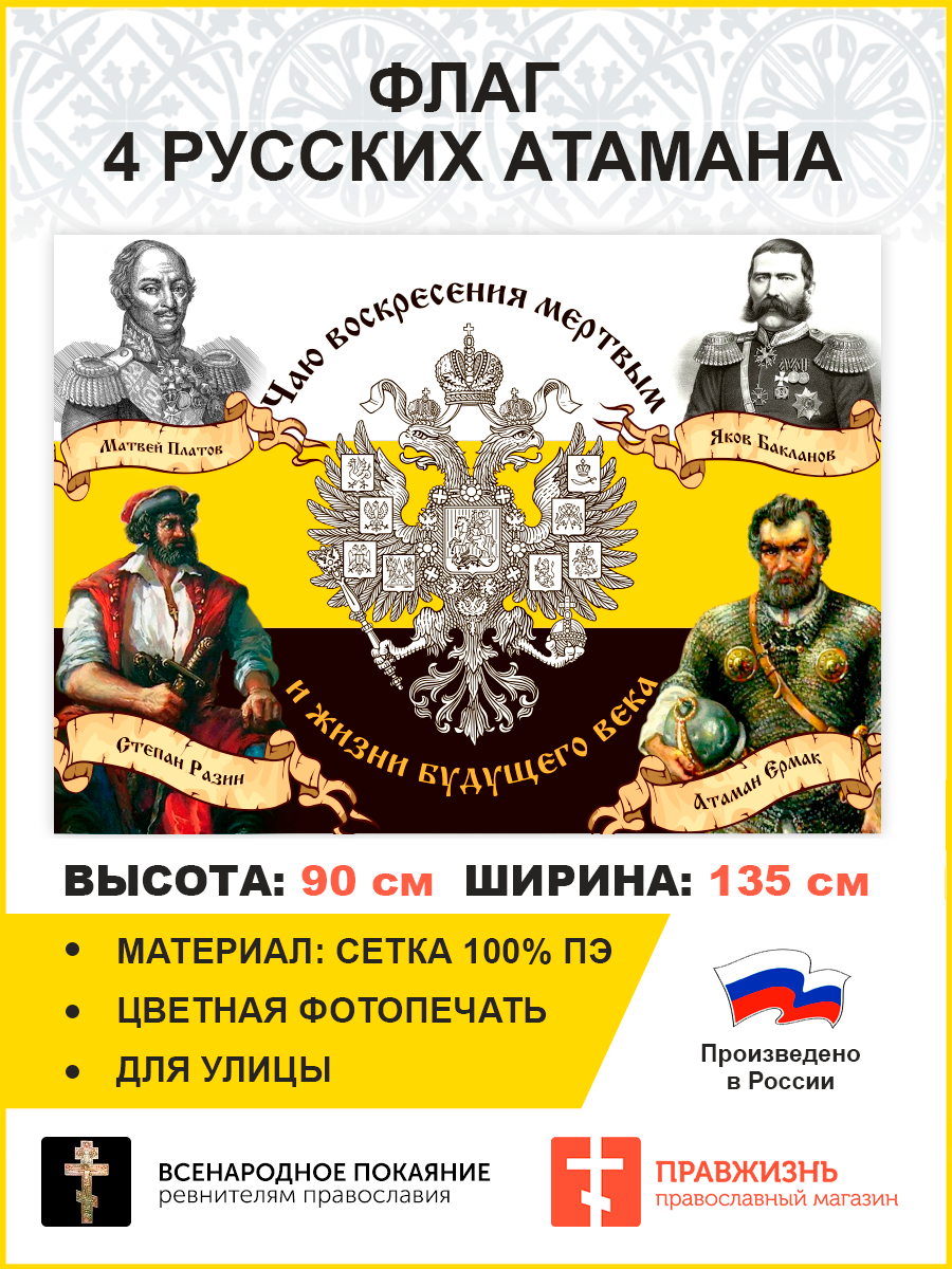 Флаг 026 атамана Платов, Бакланов, Ерамак, Разин,90х135сетка