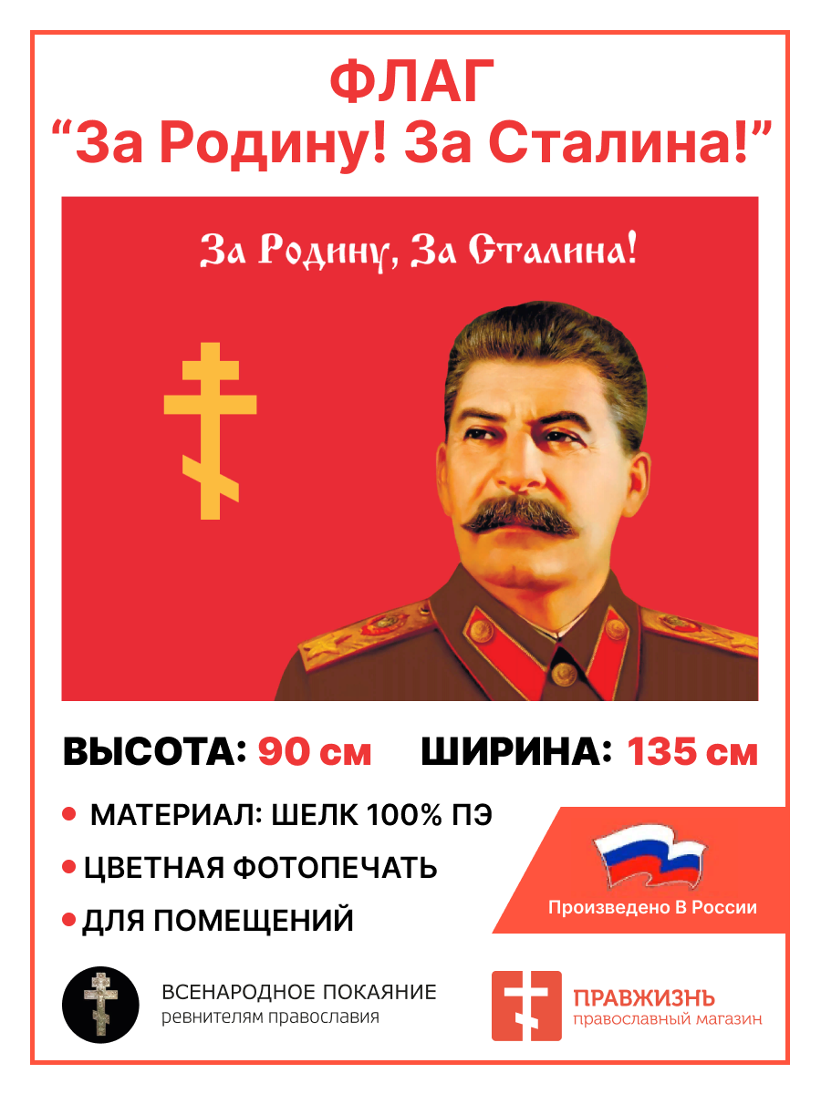 Флаг 029 За родину, за Сталина, 90х135 см, материал шелк для помещений