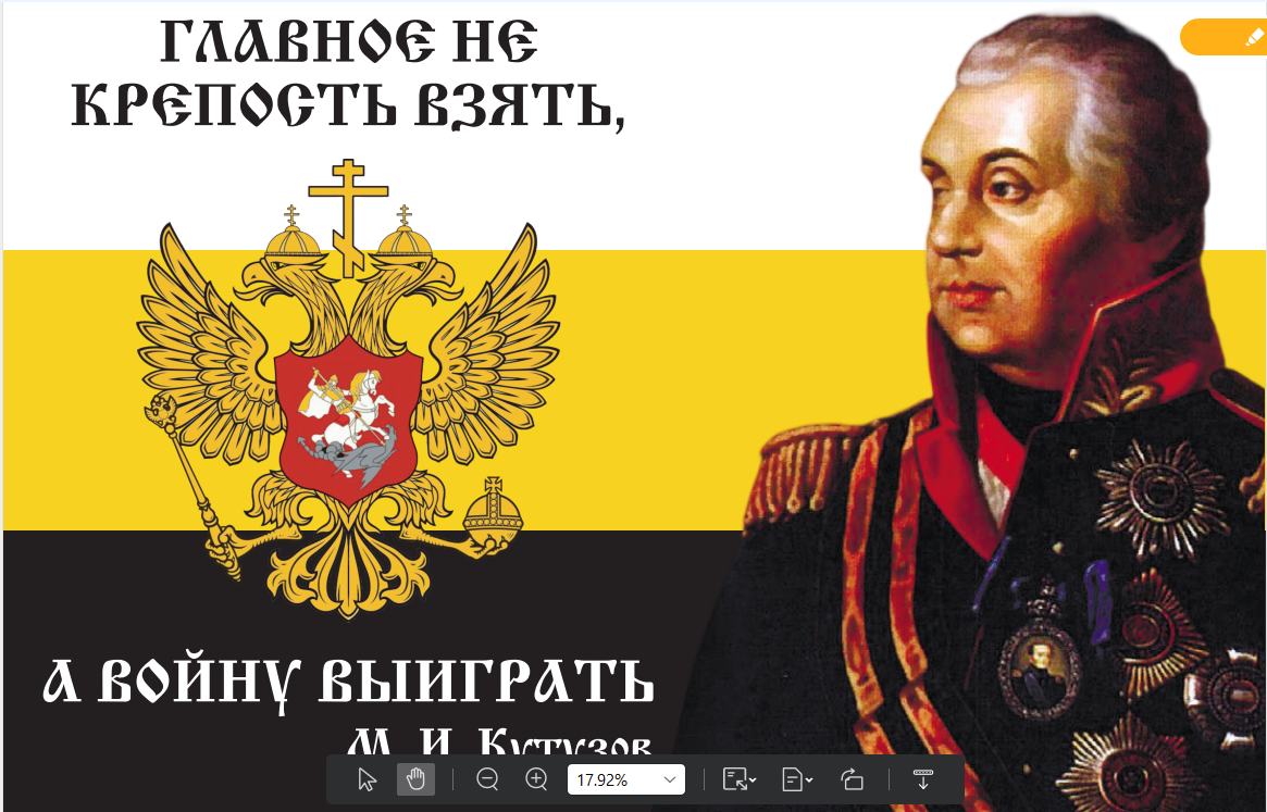 Флаг 091 Кутузов Царский флаг Главное не крепость взять, 90х135, материал шелк для помещений.
