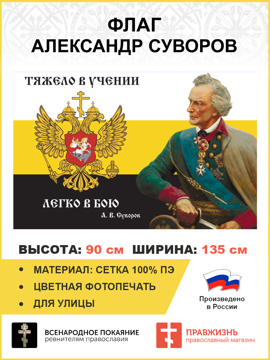 Флаг 109 Суворов Тяжело в учении легко в бою 90х135 материал сетка для улицы