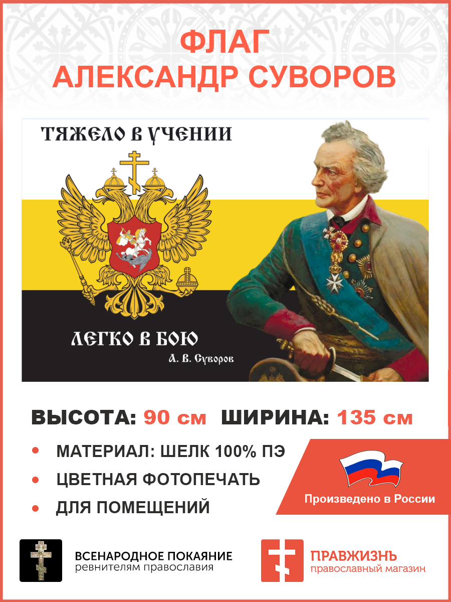 Флаг 109 Суворов Тяжело в учении легко в бою 90х135 материал шелк для помещений
