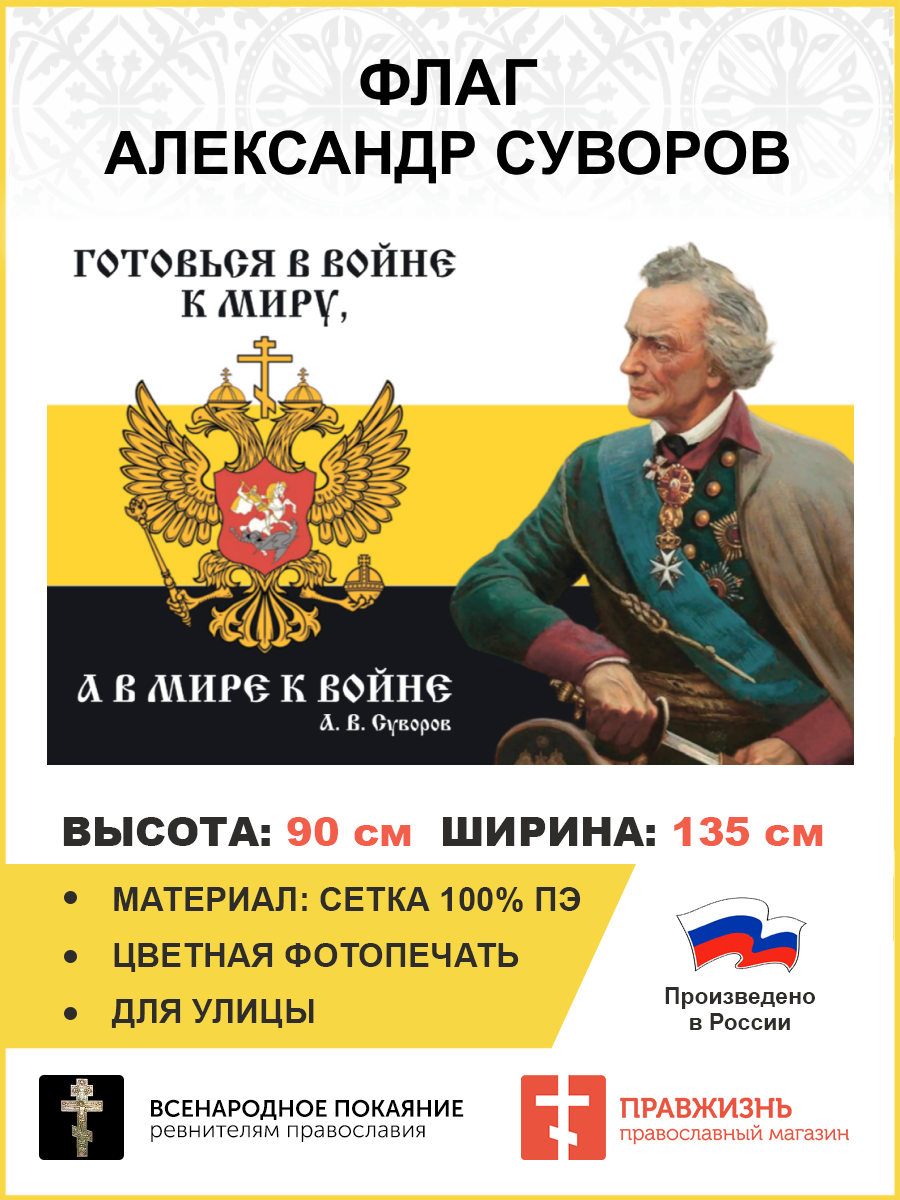 Флаг 110 Суворов Готовья в войне к миру, а в мире к войне 90х135 материал сетка для улицы