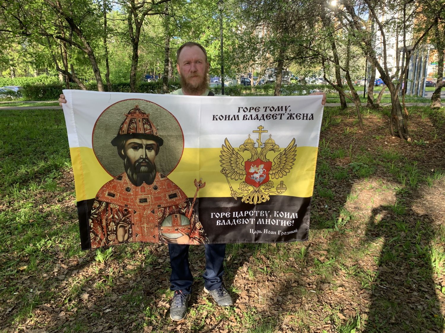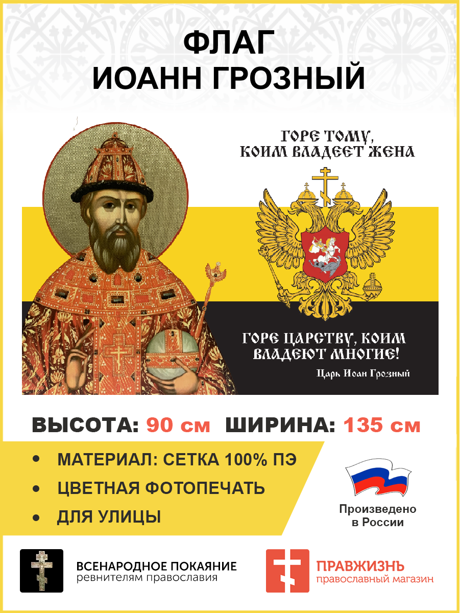 Флаг 115 Иоанн Грозный Горе тому, коим владеет жена Горе Царству 90х135 материал сетка для улицы