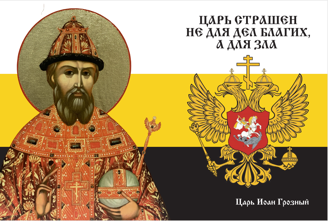 Флаг 116 Иоанн Грозный Царь страшен не для дел благих, а для зла 90х135 материал шелк для помещений